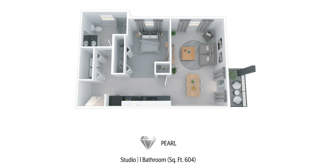 Studio, 1 Bath, 604 sq ftModel Gallery