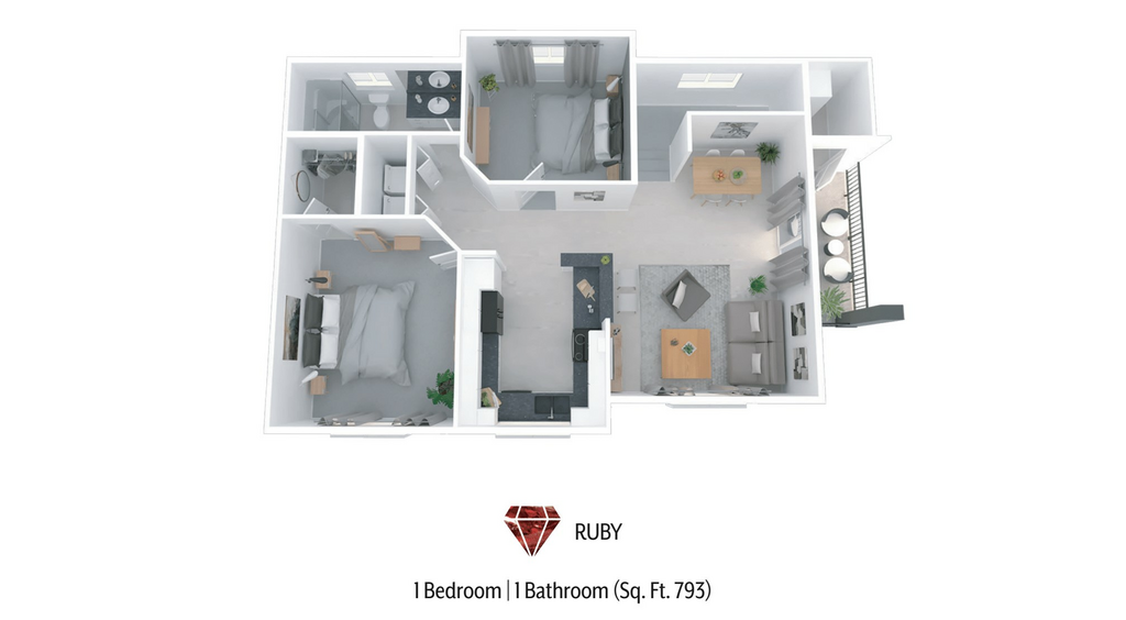 1 Bed, 1 Bath, 793 sq ftAvailable NowModel Gallery