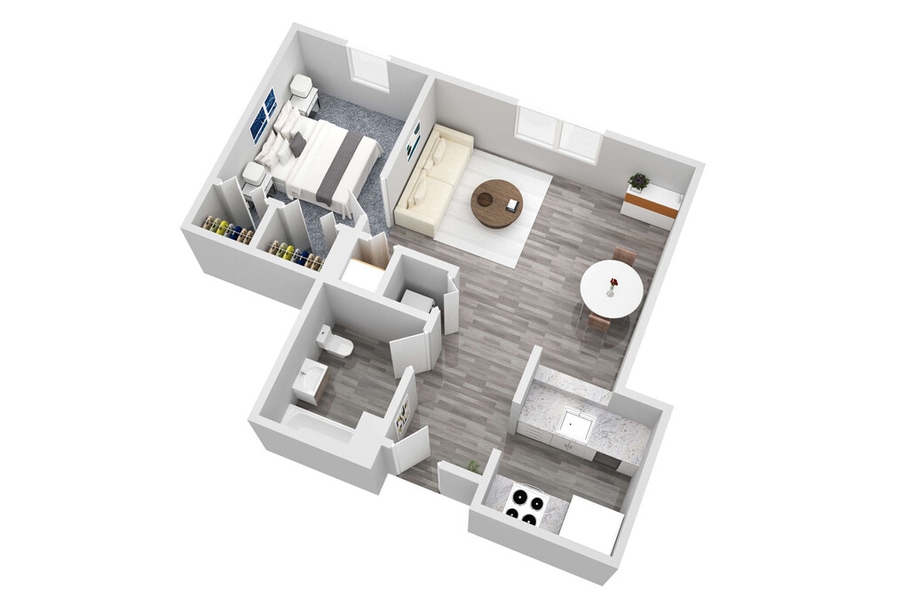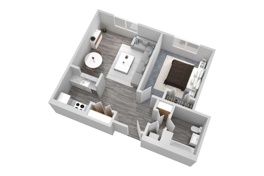 1 Bed, 1 Bath, 614 sq ftModel Gallery