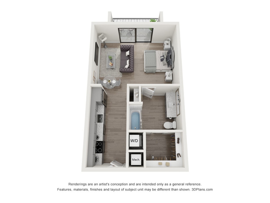 1 Bed, 1 bath - Floorplan 3 Floor plans are artist's rendering. All dimensions are approximate. Actual product and specifications may vary in dimension or detail. Not all features are available in every rental home. Please see a representative for details.