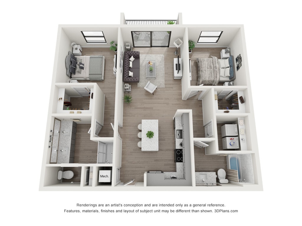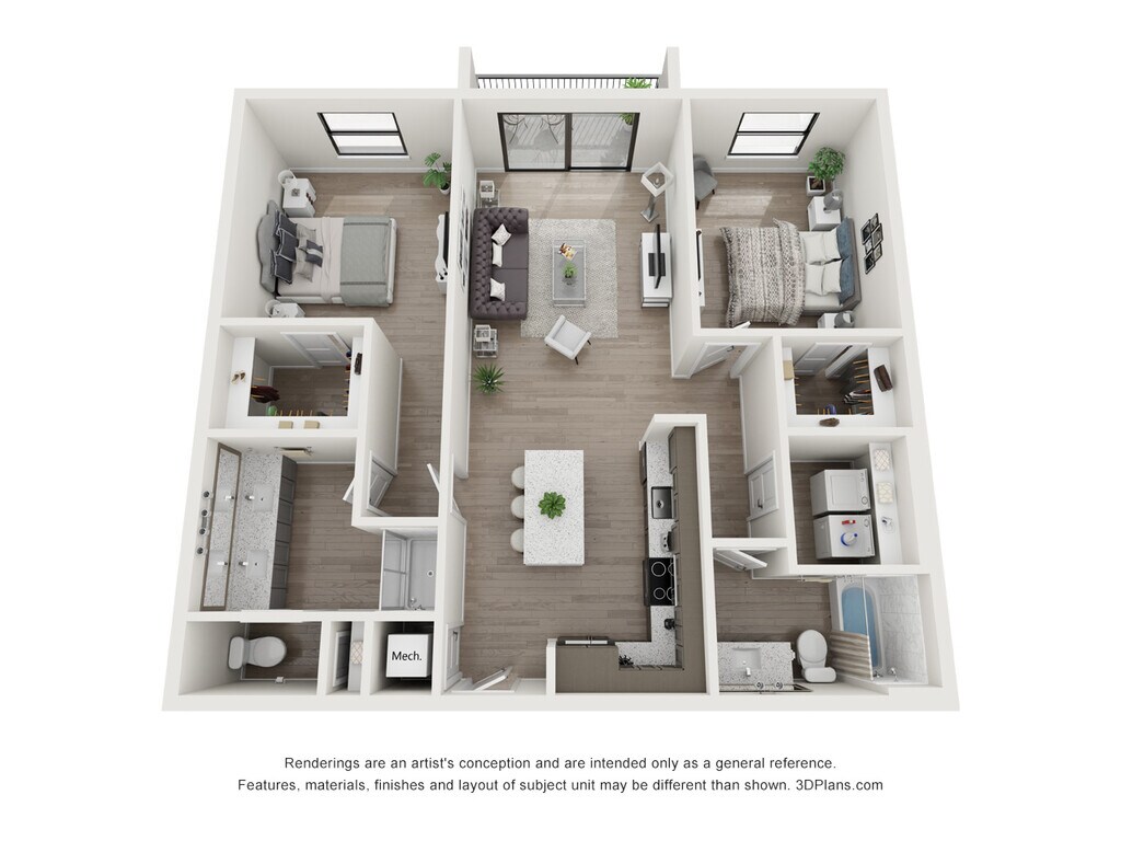 2 Beds, 2 baths - Floorplan 3 Floor plans are artist's rendering. All dimensions are approximate. Actual product and specifications may vary in dimension or detail. Not all features are available in every rental home. Please see a representative for details.