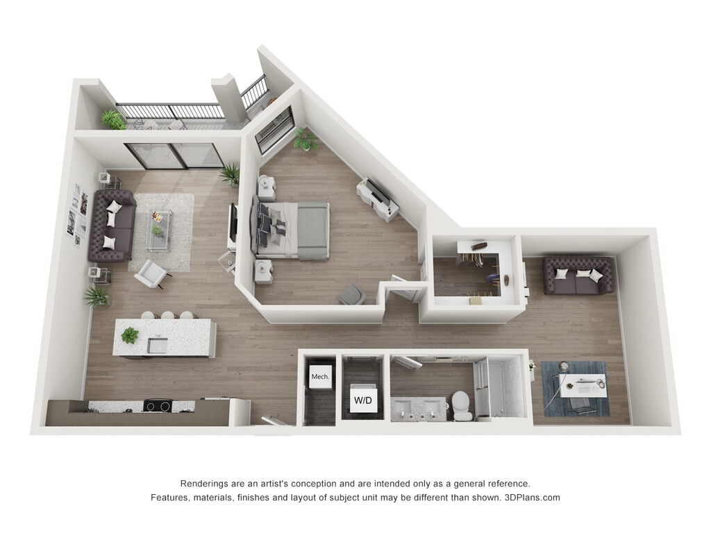 1 Bed, 1 bath - Floorplan 2 Floor plans are artist's rendering. All dimensions are approximate. Actual product and specifications may vary in dimension or detail. Not all features are available in every rental home. Please see a representative for details.