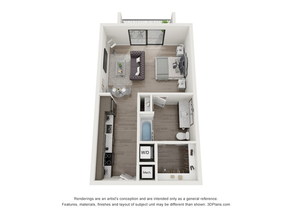 Studio, 1 bath - Floorplan 1 Floor plans are artist's rendering. All dimensions are approximate. Actual product and specifications may vary in dimension or detail. Not all features are available in every rental home. Please see a representative for details.