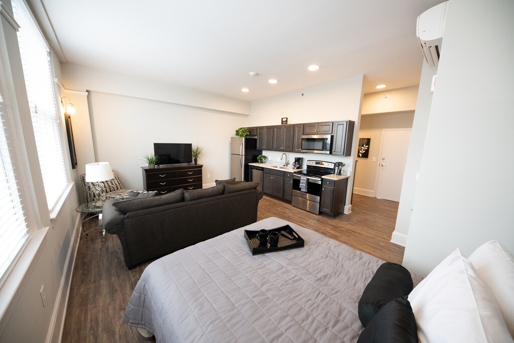 March 11, 2021If you want to live somewhere unique and full of history this building is for you. Great location, Sidewall Pizza and Pharmacy Coffee is downstairs. Plus ladies you can get your hair done downstairs before going out on the town. Don't worry gentleman there is a place for you to get your hair done while enjoying an adult beverage if you like before you go out on the town too.Review from Apartments.com