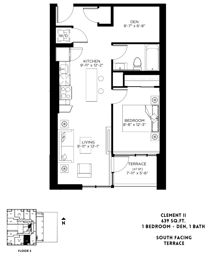 Clement II - D - Floorplan 1 Apartment Unit: 0302Apartment Model: Clement II - D$2,6361 Bedroom, 1 Bath, 639 sq ftAvailable April 10, 20262 Bedrooms
