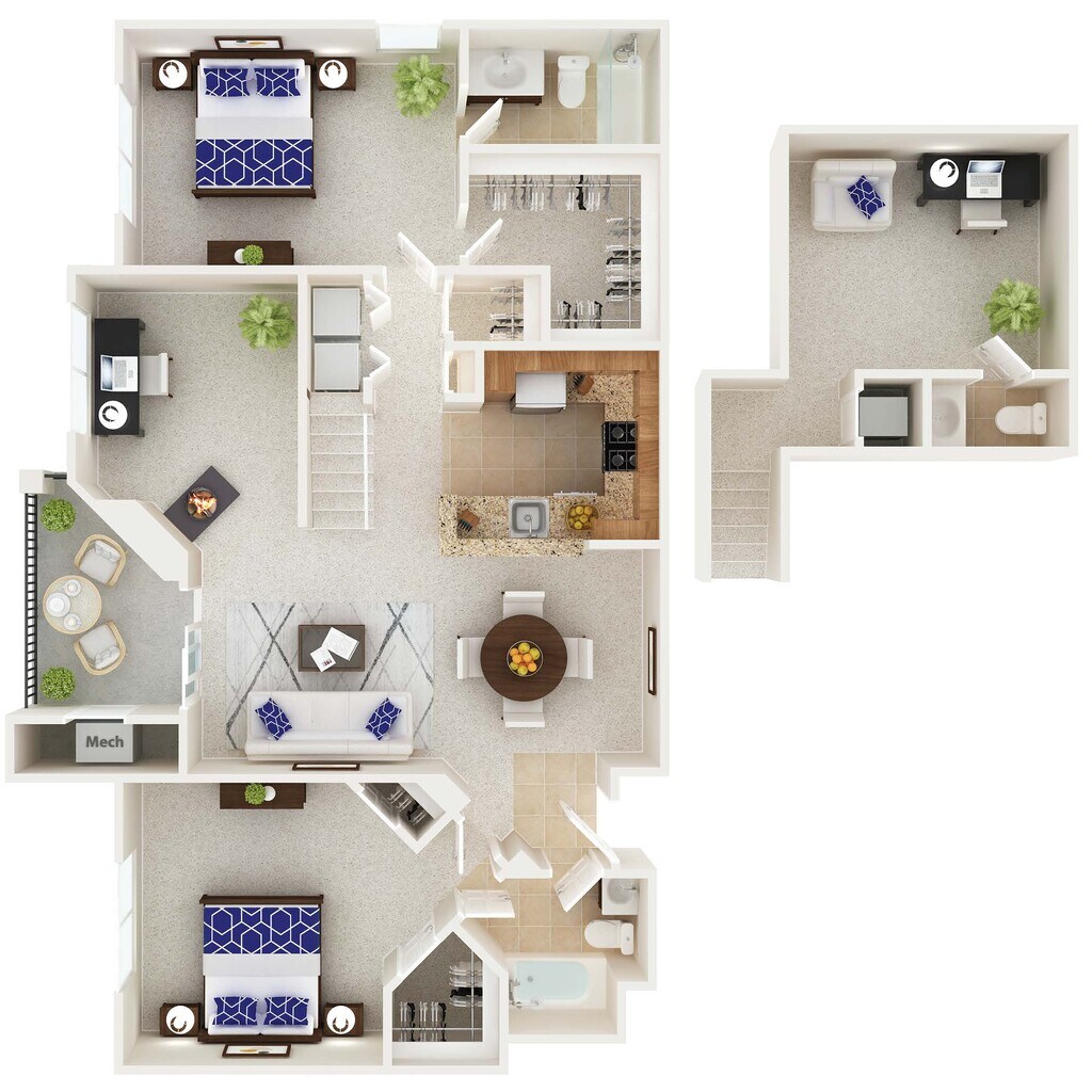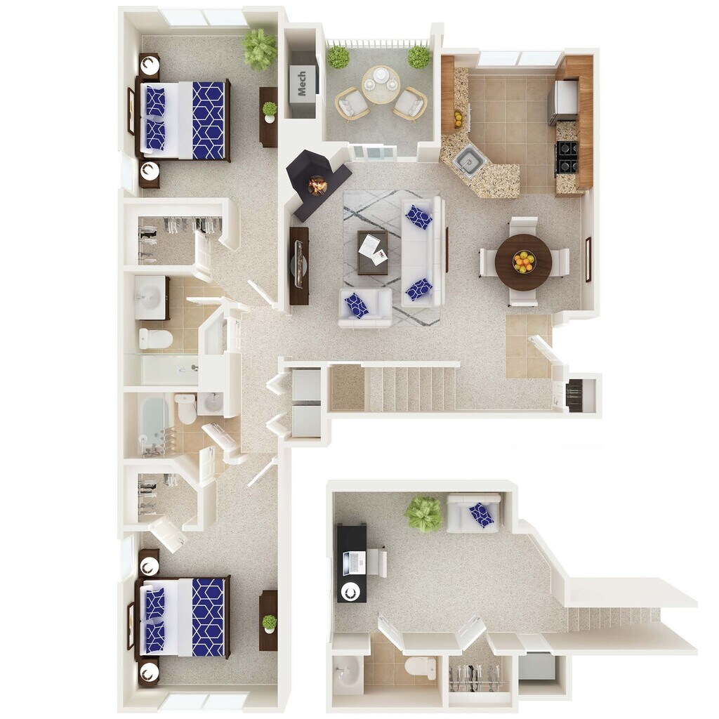 2 Beds, 2.5 Baths, 1435 sq ftAvailable NowLargest 2 BedroomThis is the largest 2 Bedroom at this PropertyModel Gallery
