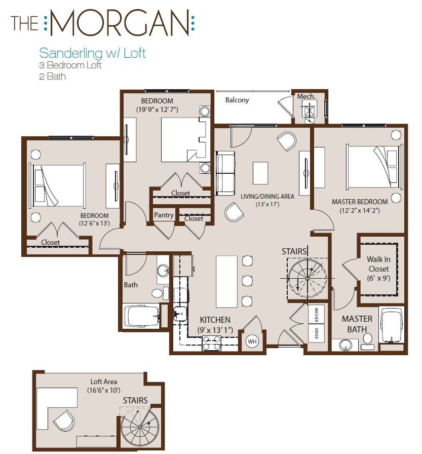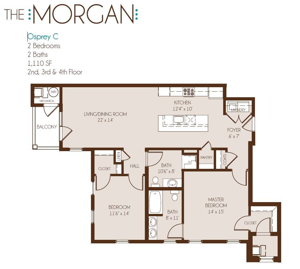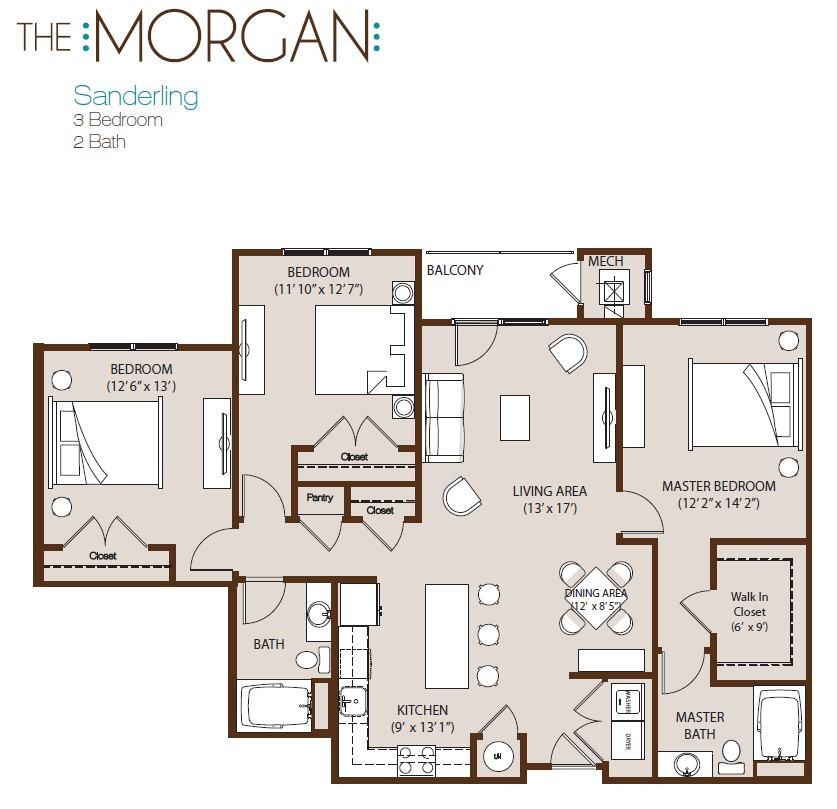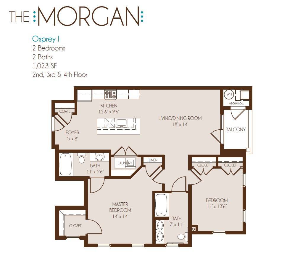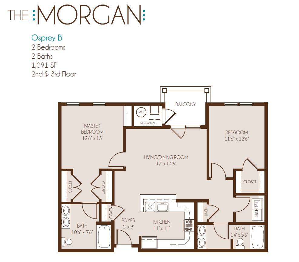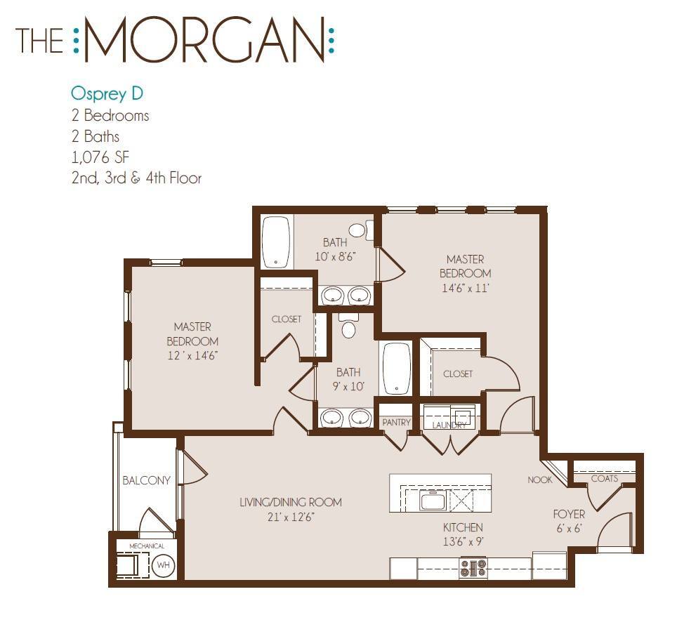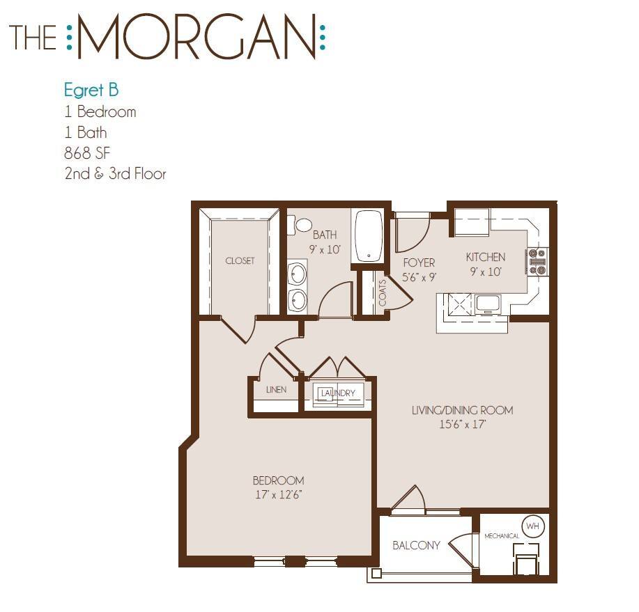 The Morgan offers 1 to 3 Bedroom apartments starting from $1,392 and having 789–1,568 sq ft. Here is the current pricing and availability: