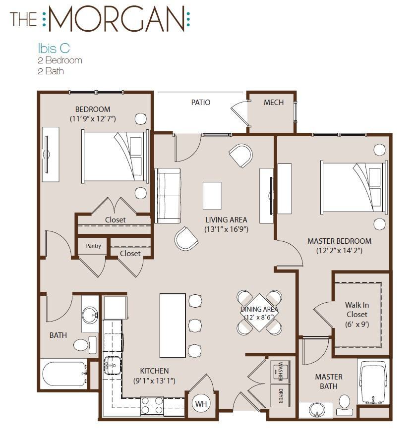 Ibis A - Floorplan 1 Apartment Unit: 121-201Apartment Model: Ibis A$1,8332 Bedroom, 2 Bath, 1100 sq ftAvailable NowApartment Unit: 104-410Apartment Model: Ibis A$1,8532 Bedroom, 2 Bath, 1100 sq ftAvailable NowApartment Unit: 104-109Apartment Model: Ibis A$1,8712 Bedroom, 2 Bath, 1100 sq ftAvailable NowPelican A