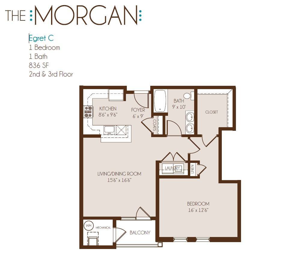 1 Bedroom to 3 Bedroom Apartments at The Morgan currently range from $1,392 to $2,001