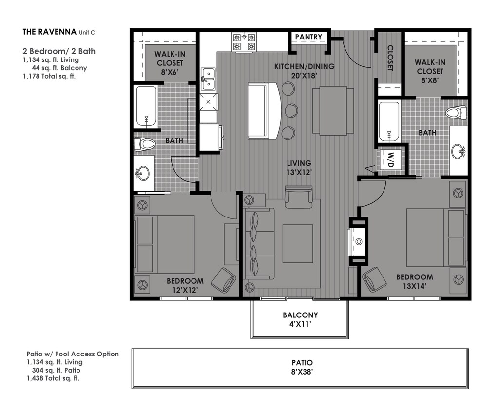 The Montage Studio with Terrace - Floorplan 1 1 Bedroom