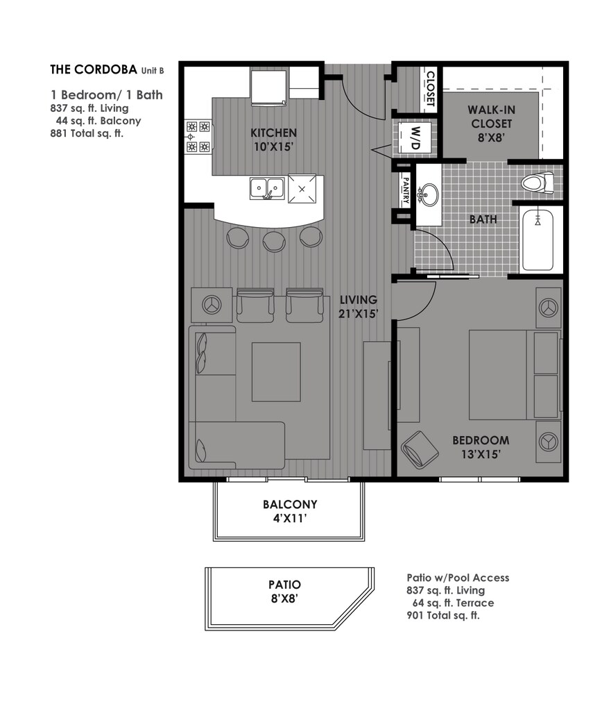 1 Bed, 1 Bath, 536 sq ftAvailable NowModel Gallery