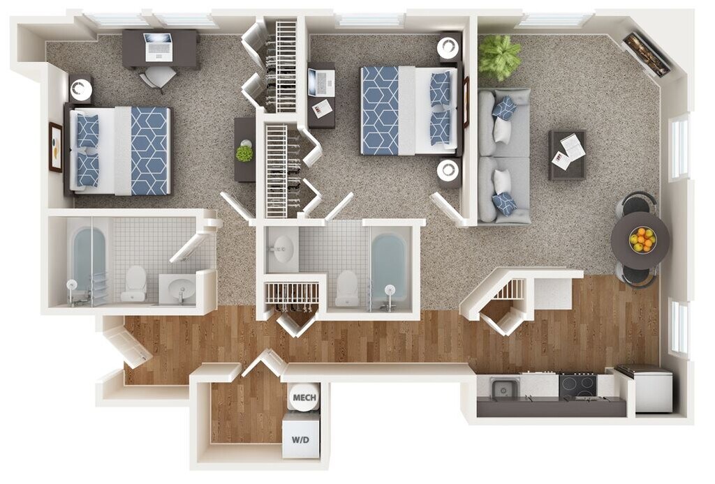 1 Bed, 1.5 Baths, 850 sq ftAvailable NowLargest 1 BedroomThis is the largest 1 Bedroom at this PropertyModel Gallery