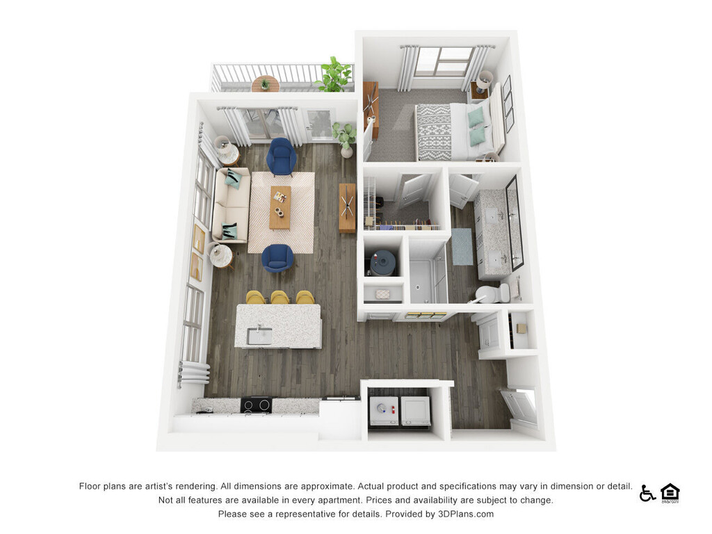 1 Bed, 1 Bath, 728 sq ftModel Gallery
