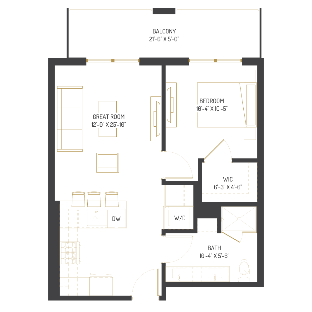 Studio, 1 Bath, 471 sq ftPlus FeesAvailable May 20Model Gallery