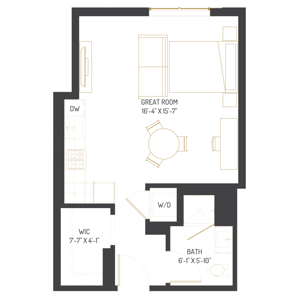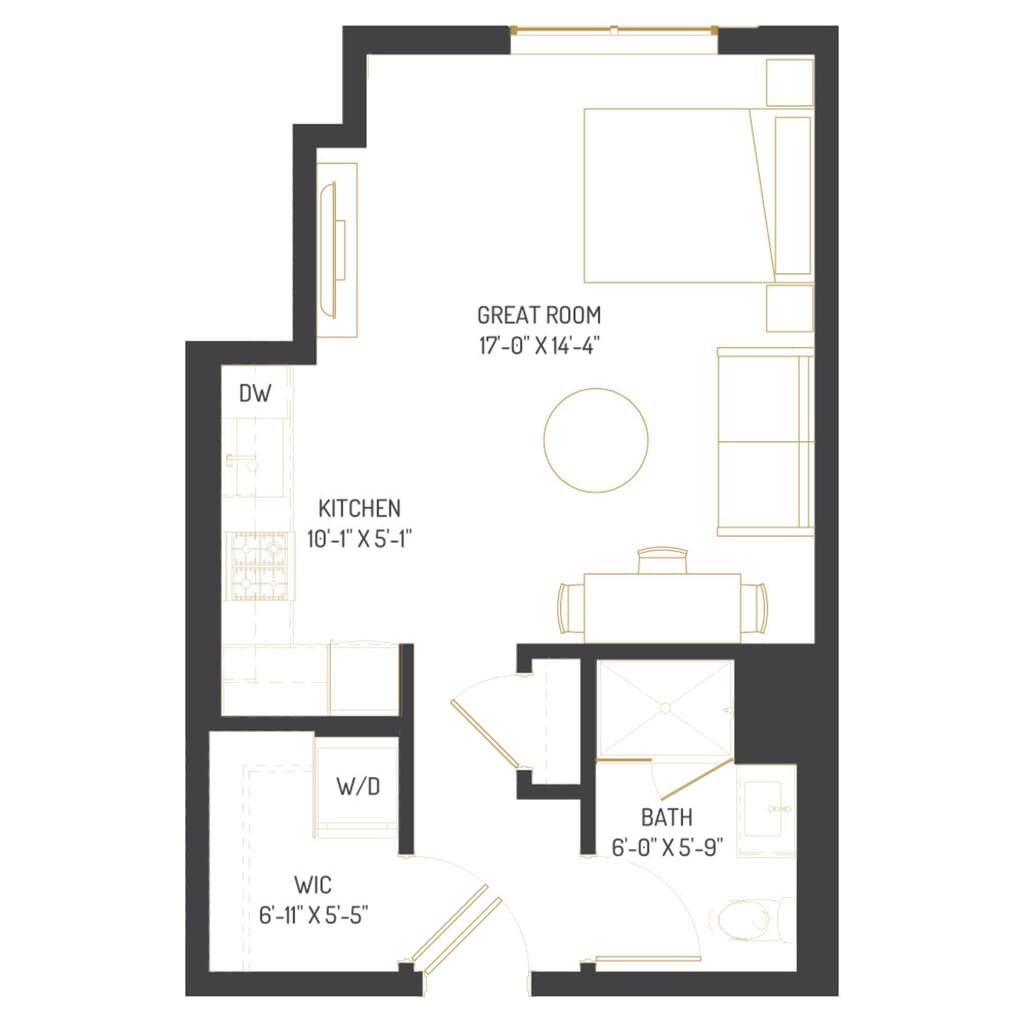 A1 - Floorplan 2 Apartment Unit: 251Apartment Model: A1$1,500Studio, 1 Bath, 453 sq ftAvailable May 20, 2026![]()
