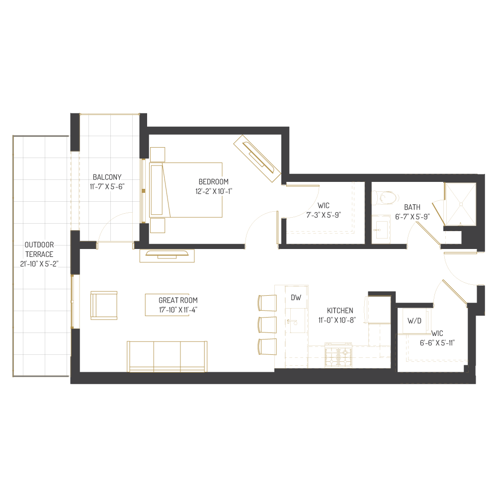 Apartment Model: A1$1,500Studio, 1 Bath, 453 sq ftAvailable May 20, 2026![]()
