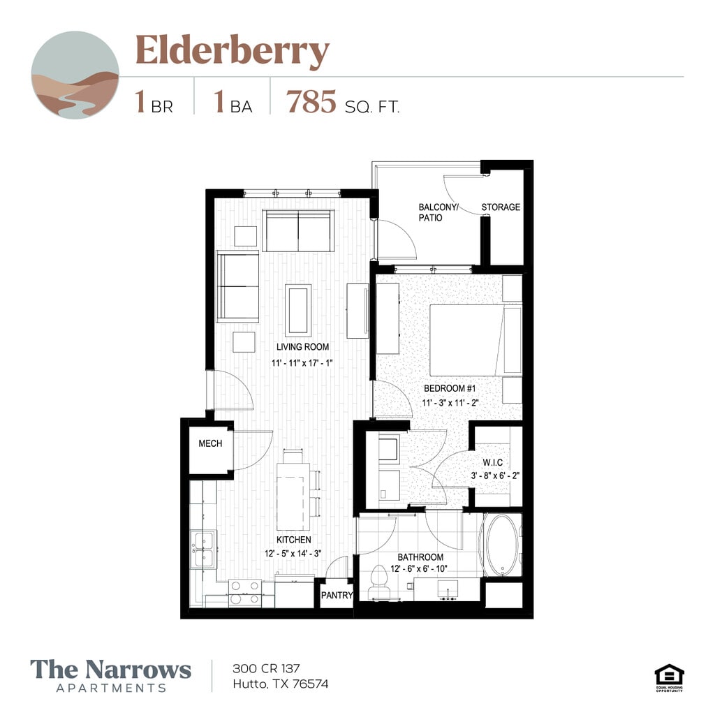 Apartment Model: ElderberryFrom $9751 Bedroom, 1 Bath, 785 sq ftAvailable January 1, 2026![]()