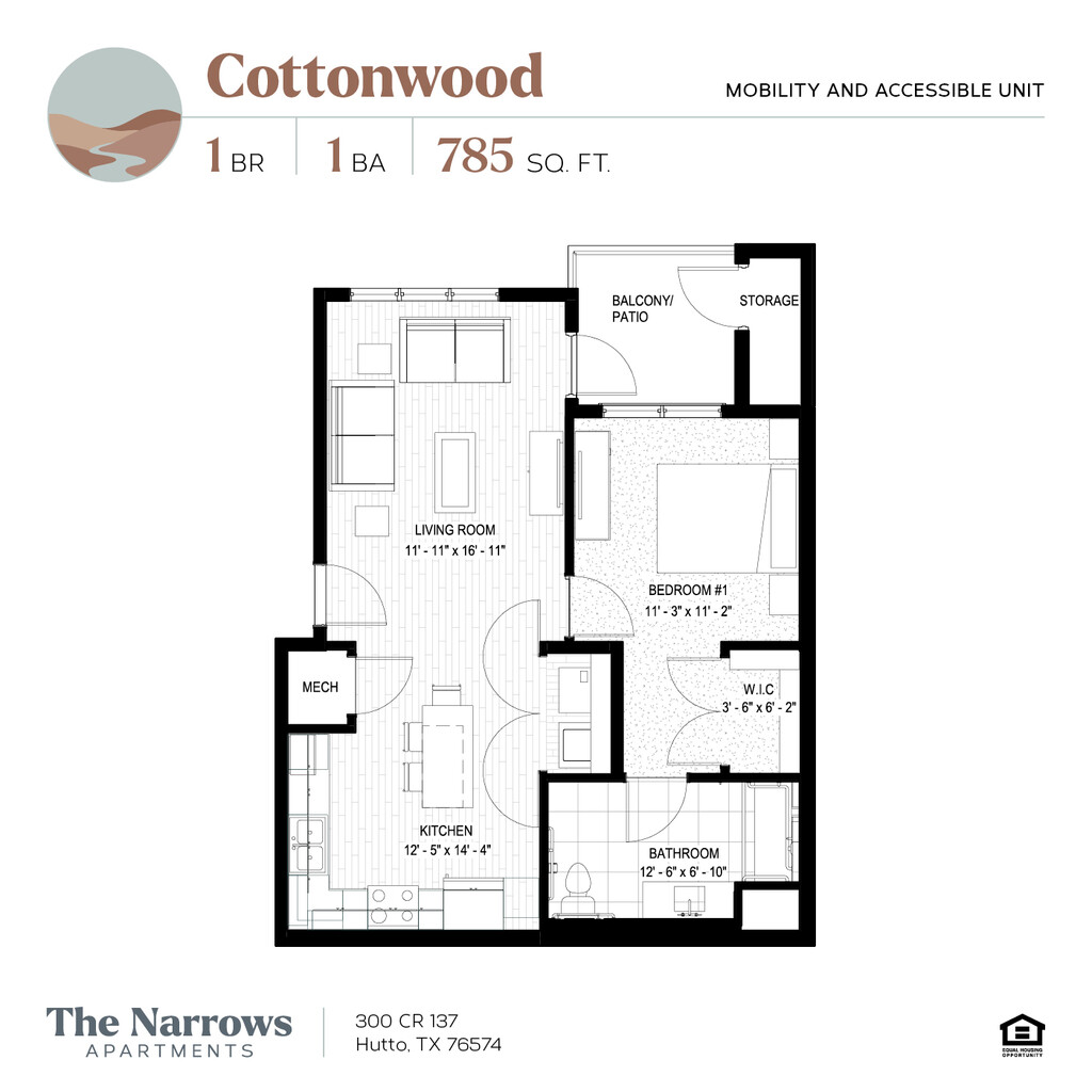 Apartment Model: CottonwoodFrom $9751 Bedroom, 1 Bath, 785 sq ftUnavailable![]()