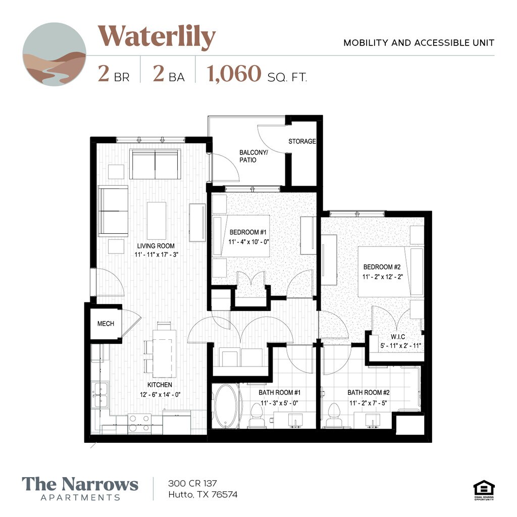 Apartment Model: WaterlilyFrom $1,1992 Bedroom, 2 Bath, 1060 sq ftUnavailable![]()