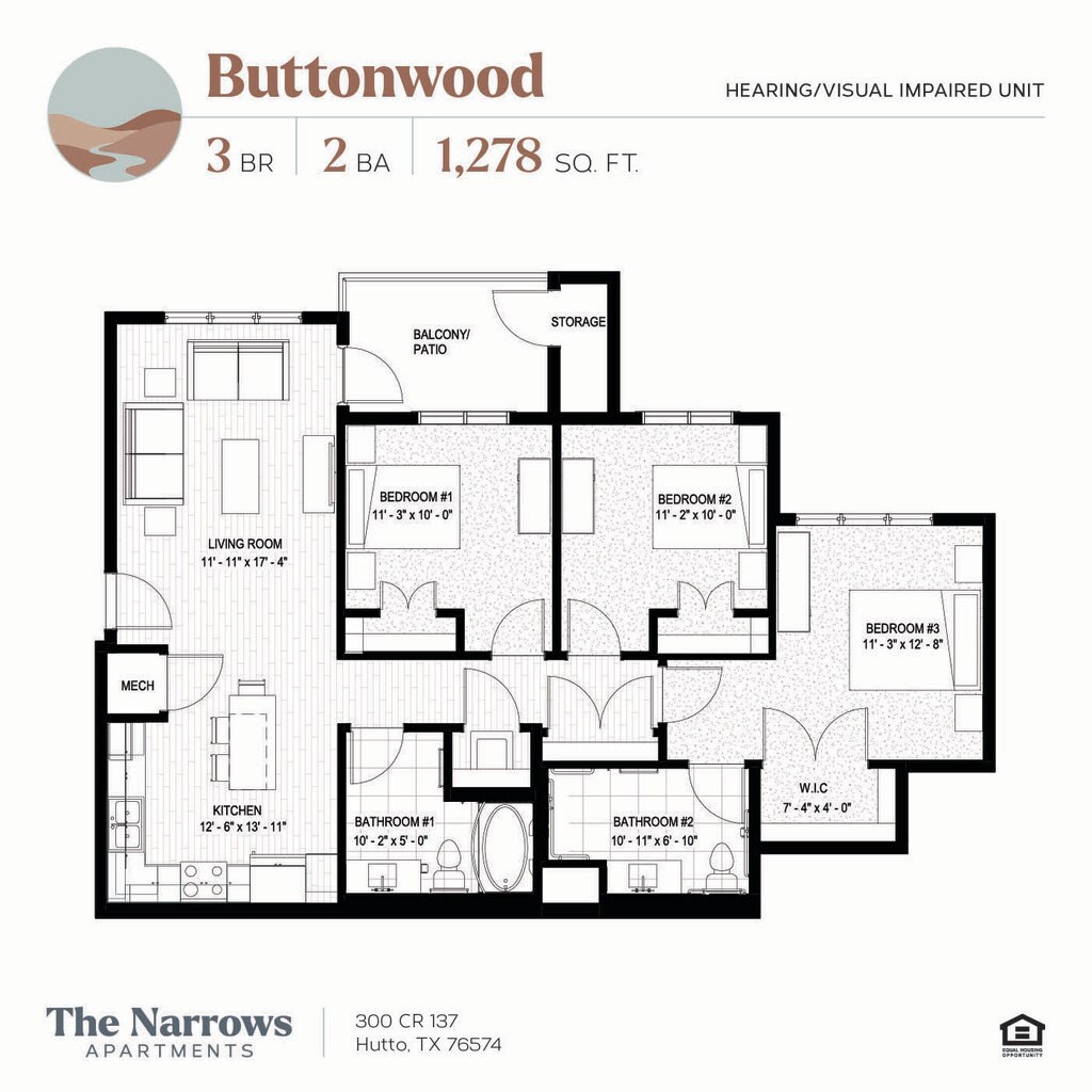 Apartment Model: ButtonwoodFrom $1,3993 Bedroom, 2 Bath, 1278 sq ftUnavailable![]()