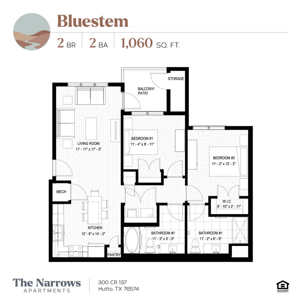 Bluestem - Floorplan 1 Apartment Unit: 13301Apartment Model: Bluestem$1,5232 Bedroom, 2 Bath, 1060 sq ftAvailable January 9, 2026Linden