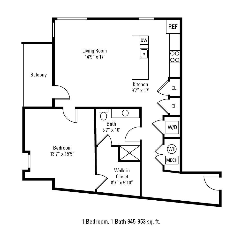 1 Bedroom 1 Bath - Floorplan 1 Apartment Unit: 225Apartment Model: 1 Bedroom 1 Bath$2,2951 Bedroom, 1 Bath, 953 sq ftAvailable November 13, 20251 Bedroom 1 Bath