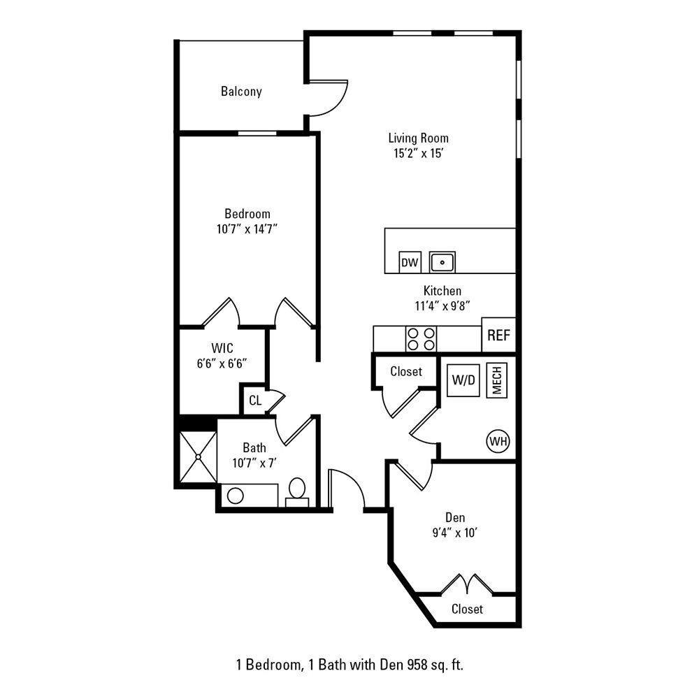 1 Bedroom 1 Bath w/ Den - Floorplan 1 1 Bedroom 1 Bath