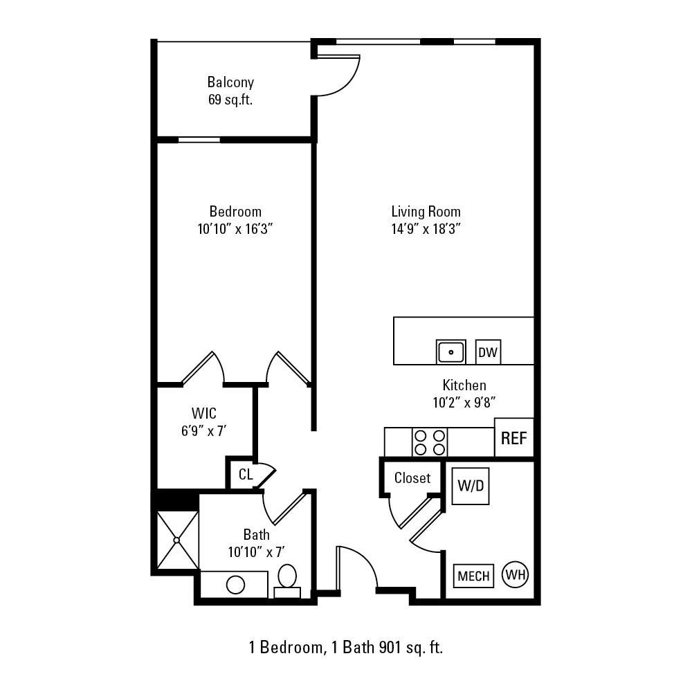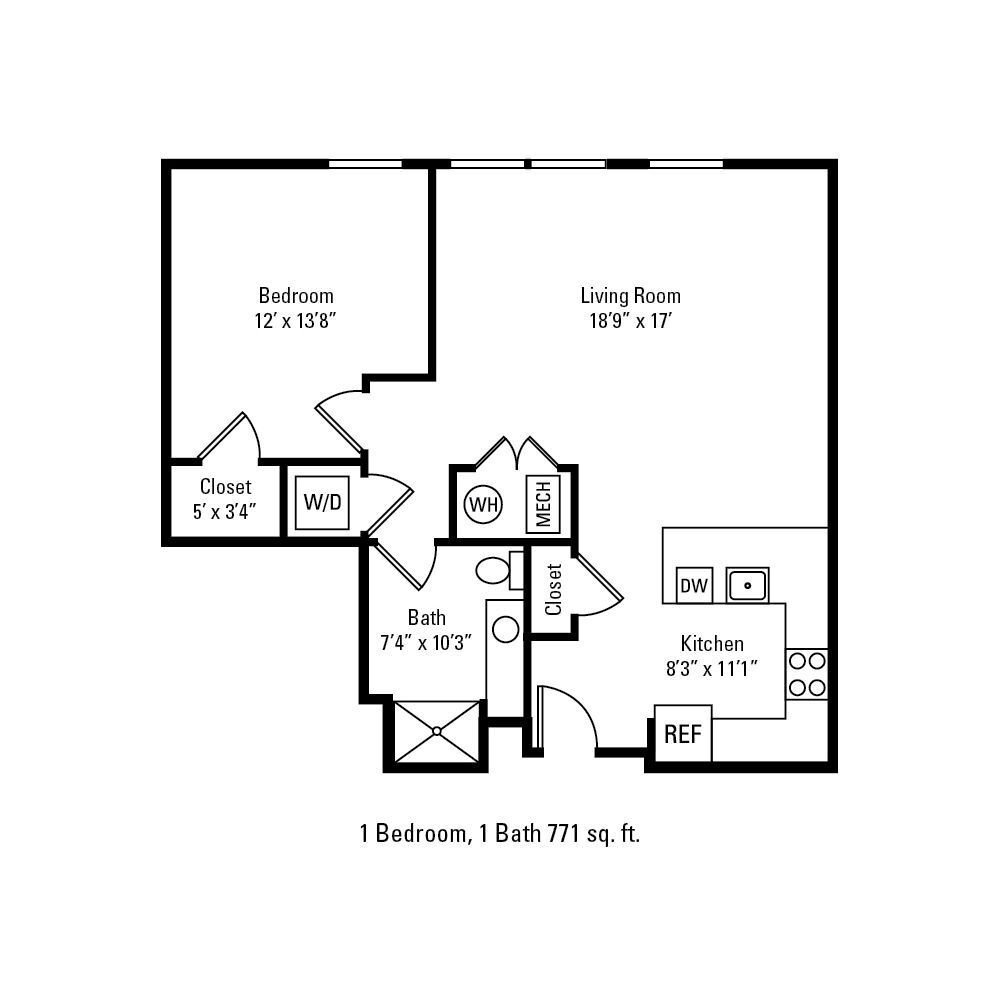 1 Bedroom 1 Bath - Floorplan 1 1 Bedroom 1 Bath