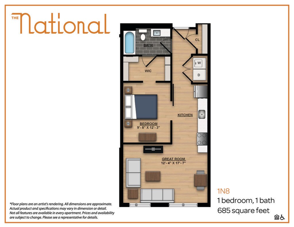 Apartment Model: 1N8From $1,9701 Bedroom, 1 Bath, 685 sq ftAvailable Now![]()