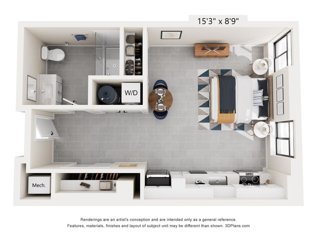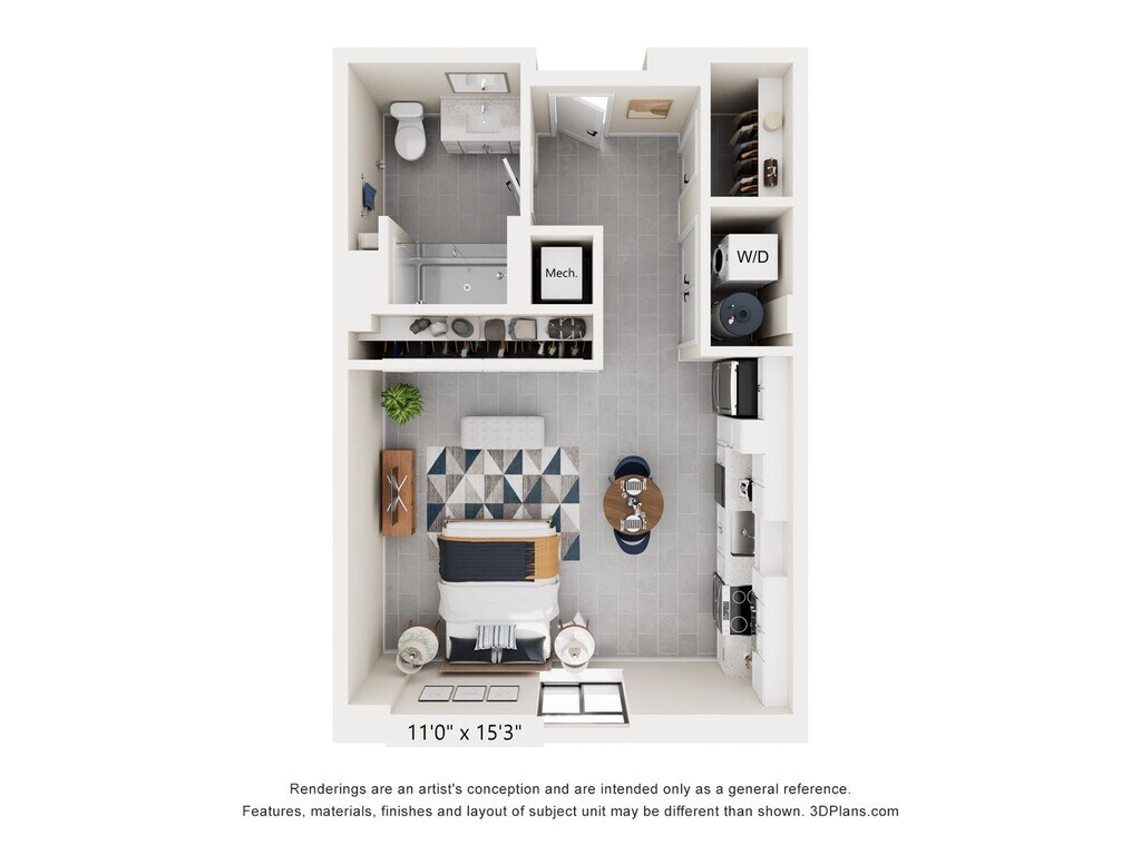 Studio, 1 Bath, 500 sq ftAvailable NowModel Gallery