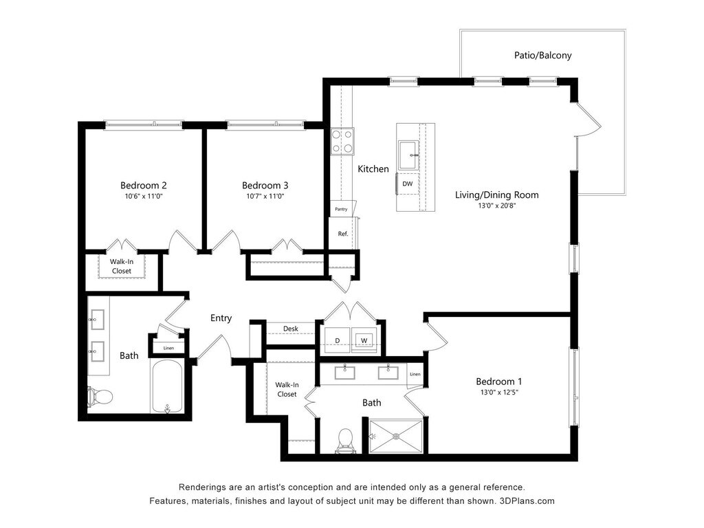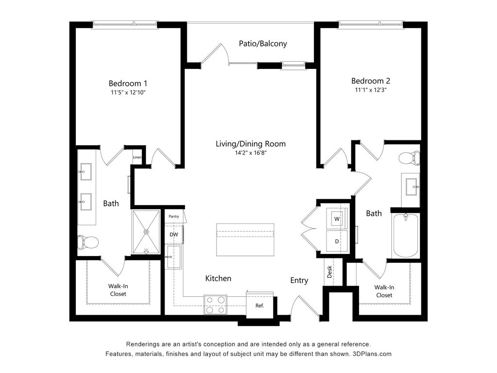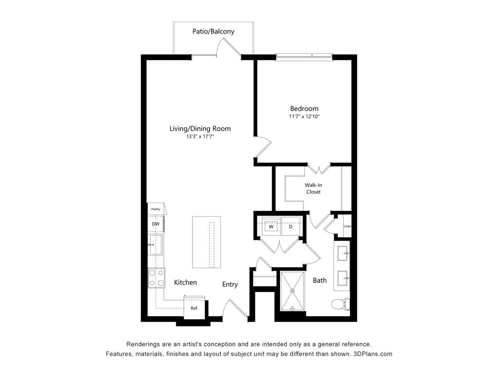 Apartment Model: S1From $1,2491 Bedroom, 1 Bath, 702 sq ftAvailable NowFloor plans are artist's rendering. All dimensions are approximate. Actual product and specifications may vary in dimension or detail. Not all features are available in every rental home. Please see a representative for details.
