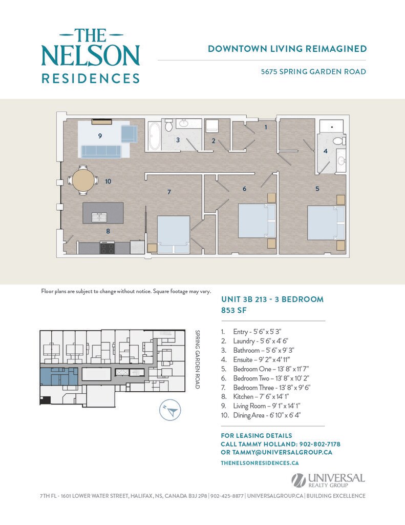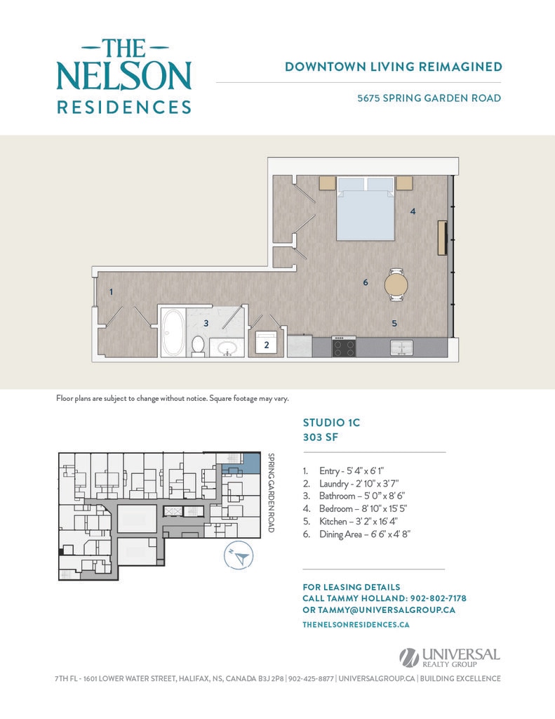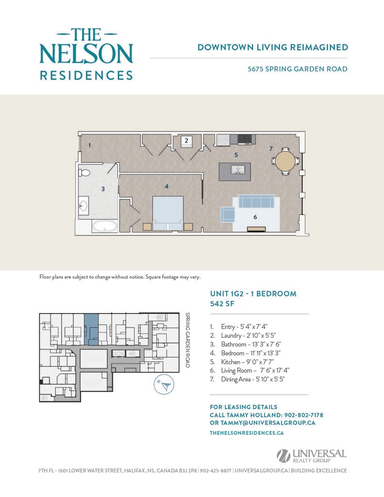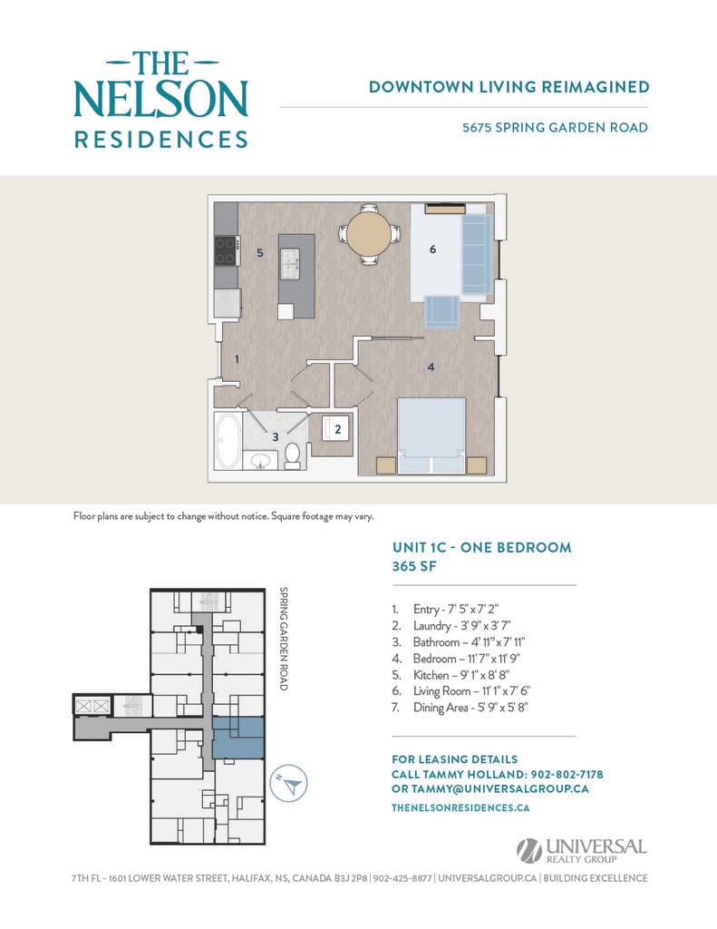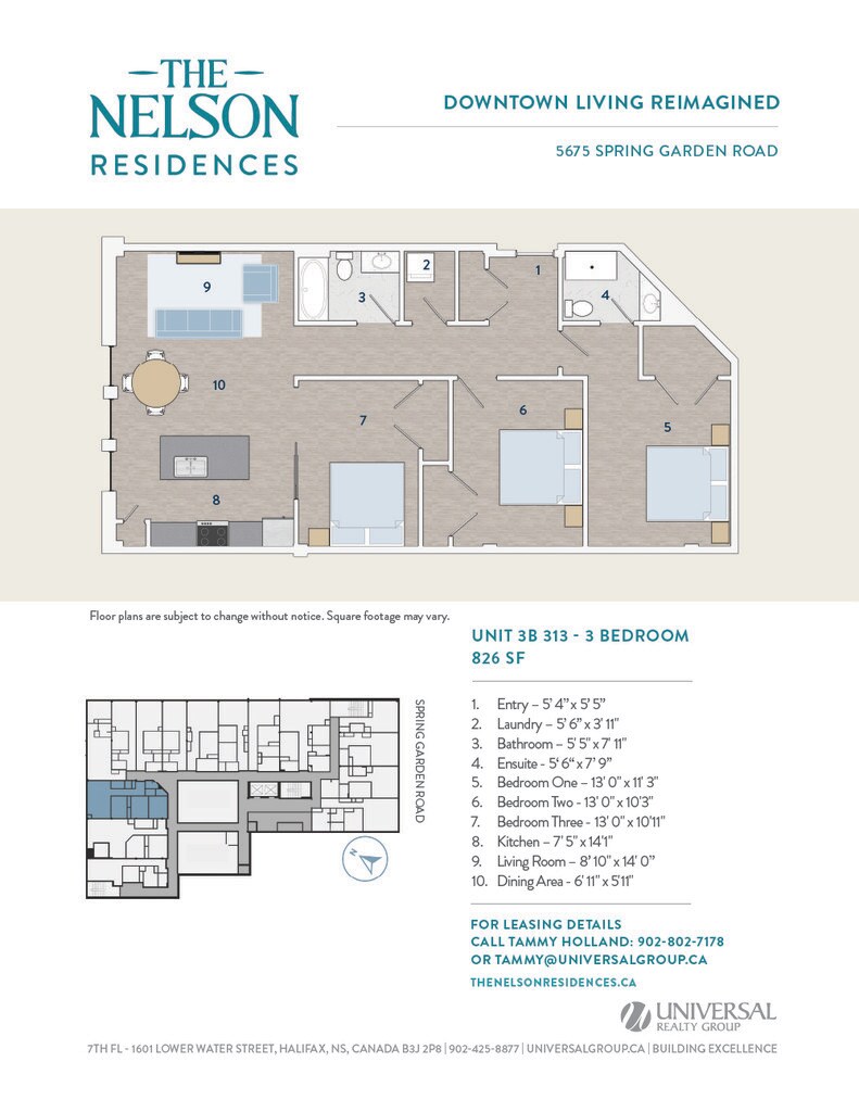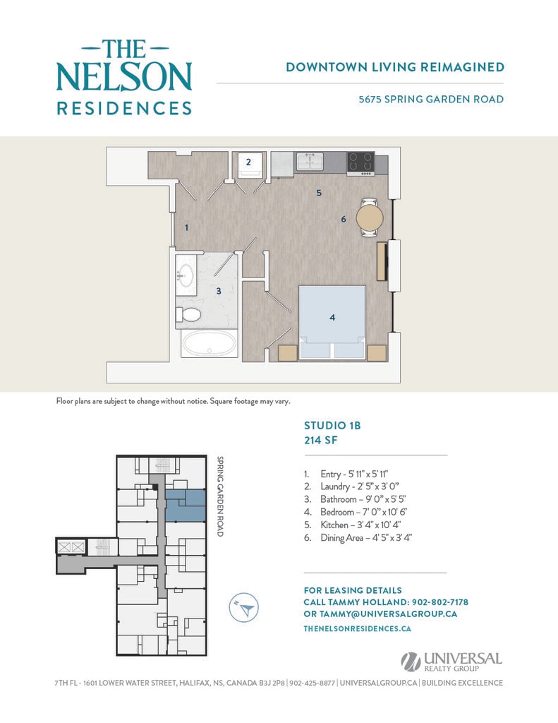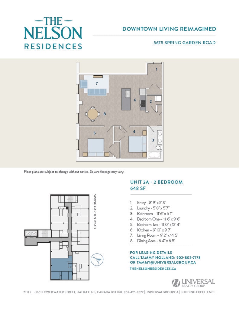 Universal Realty Group is pleased to introduce The Nelson Residences — a distinguished downtown address transformed into stylish and contemporary apartments designed for urban living. In collaboration with the visionary architects at Studioworks, the project redefines the corner of Spring Garden Road and South Park Street, creating a refined, connected living experience at the heart of the city. Opening April 2026, The Nelson Residences offer a fresh perspective on modern city life. Boasting a premier downtown location, The Nelson Residences feature 78 thoughtfully designed apartments, from studios to three-bedroom layouts, with open floor plans and modern kitchens equipped with stainless steel appliances and luxurious finishes. Residents enjoy a curated suite of amenities, including an elegant Club Room, a state-of-the-art Fitness Room, and access to premium services from the adjacent Lord Nelson Hotel & Suites. Covered parking provides added convenience, with direct access to the shops, dining, and services of Park Lane Mall.
