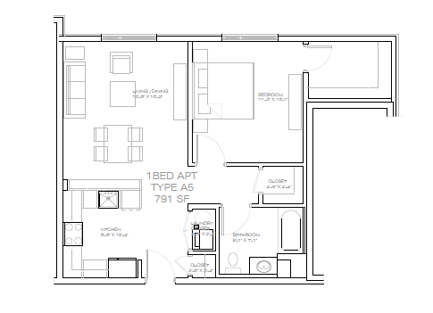 1 Bedroom: 755sf - Floorplan 1 1 Bedroom: 800sf