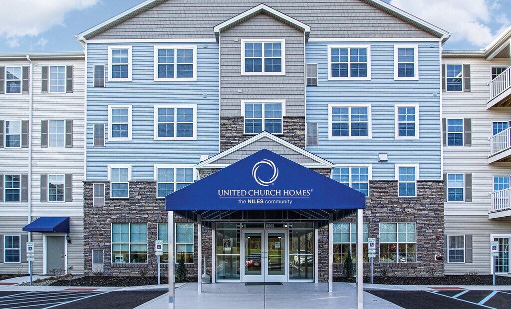 About The Niles Community Experience unprecedented comfort and peace of mind in our award-winning community nestled in picturesque Niles, OH. The Niles Community from United Church Homes greets you with comfortable one and two-bedroom apartments, thoughtful amenities, and a wealth of planned activities and events designed to fit your lifestyle. Each home is outfitted with your wellbeing in mind, featuring a no-step entry, extra-wide doorways, in-unit washer and dryer, walk-in shower, a private patio or balcony, and a fully-equipped kitchen. Sophisticated touches such as hardwood-style flooring and European flat-panel cabinetry add a touch of luxury, while modern fixtures such as frost-free refrigerators and air-conditioning increase your comfort. Enjoy the freedom of active living, making use of our thoughtful amenities. Squeeze in a heart-friendly workout in our fitness center, style your hair in our beauty and barber salon, borrow books from our library, and chat with friends and neighbors in the clubhouse. Be sure to check out our calendar and attend our planned activities and events, as well. We are pet-friendly, too, so we can’t wait to know your beloved furry companion. Located near the Eastwood Mall, The Niles Community brings quality shopping and dining at your doorsteps. Plus, you won’t miss any chance to cheer for the Mahoning Valley Scrappers, as the Eastwood Field is minutes away. Seize the chance to live the way you want, surrounded by everything you need. Browse through our photos, check out the available floor plans, then give us a ring and rent one of our comfortable and surprisingly affordable Niles apartments!