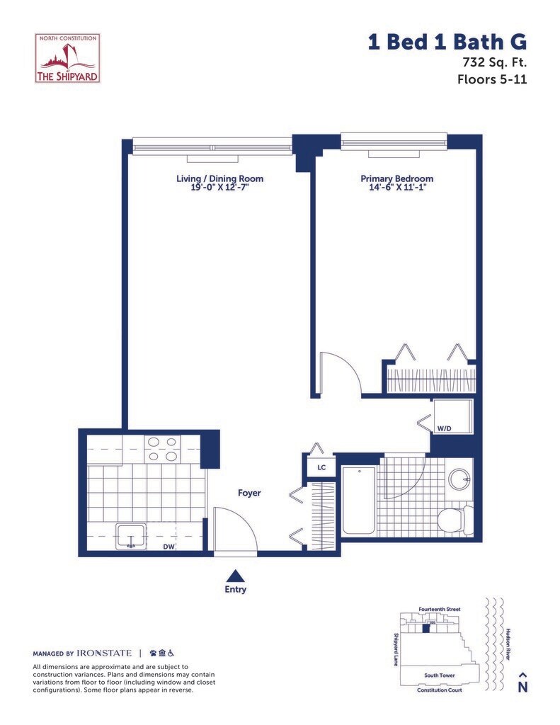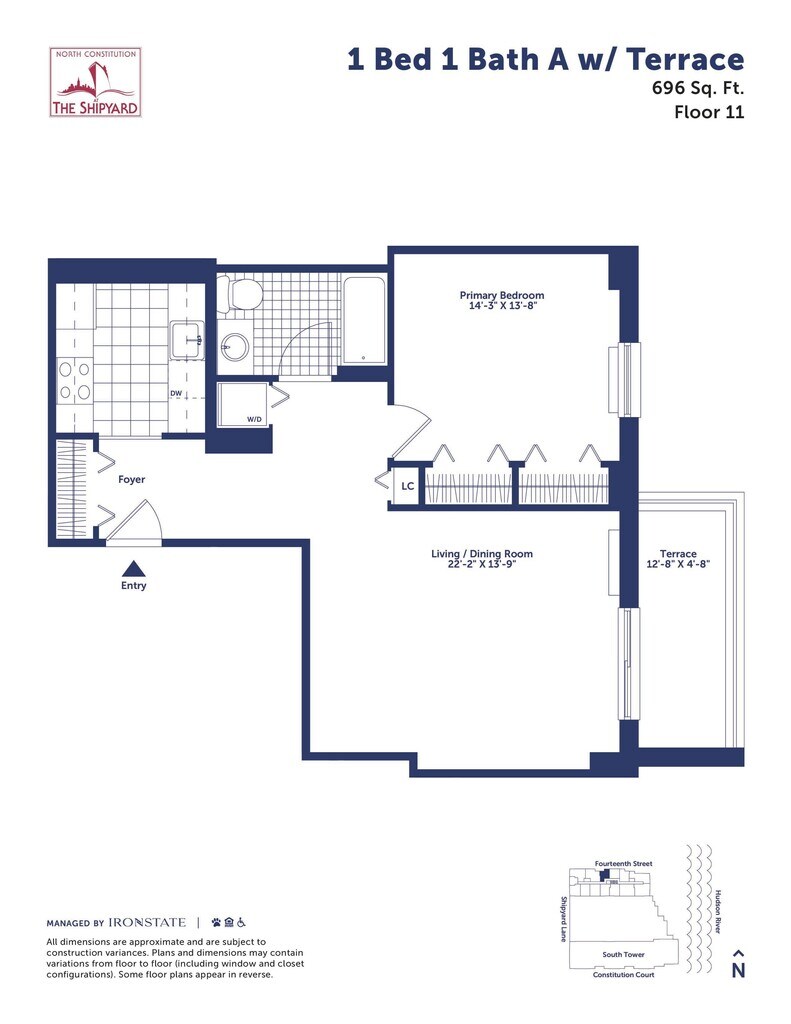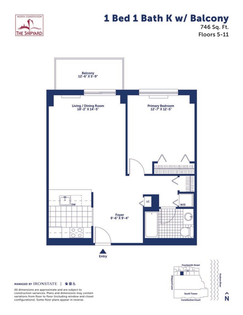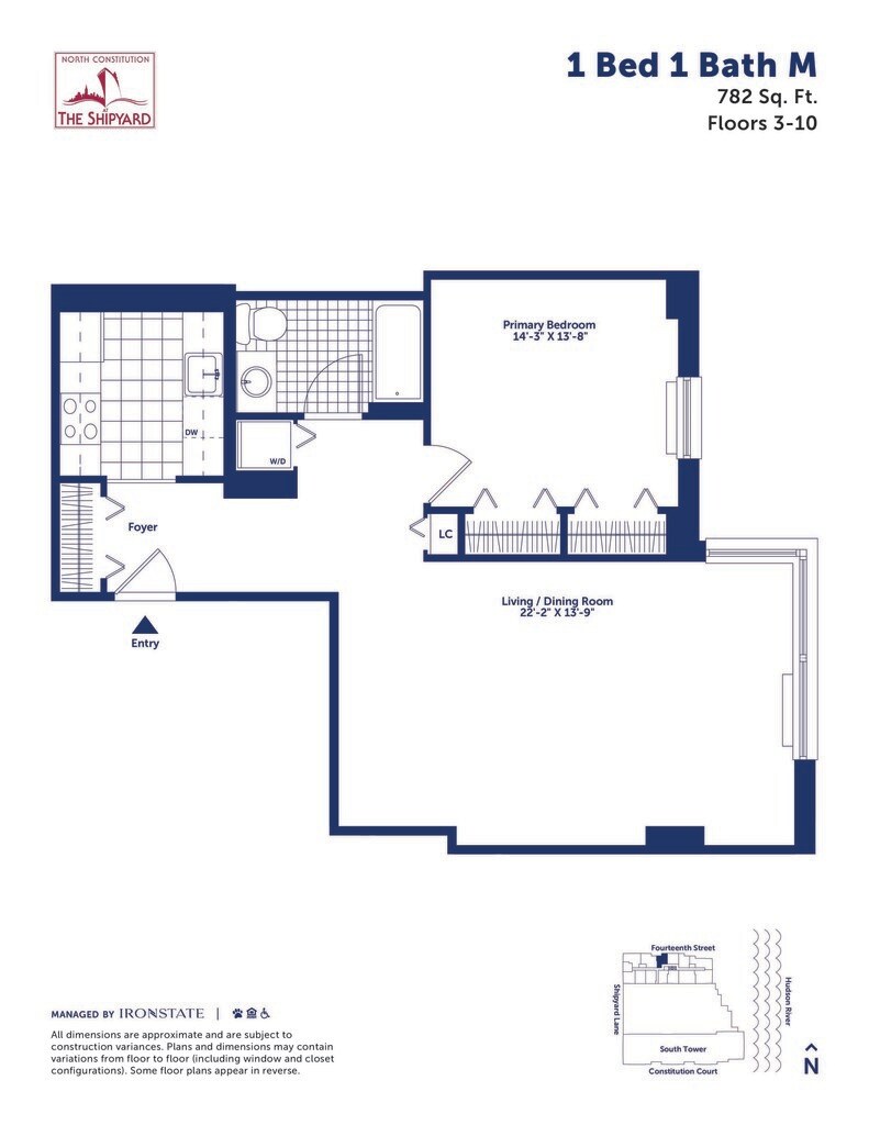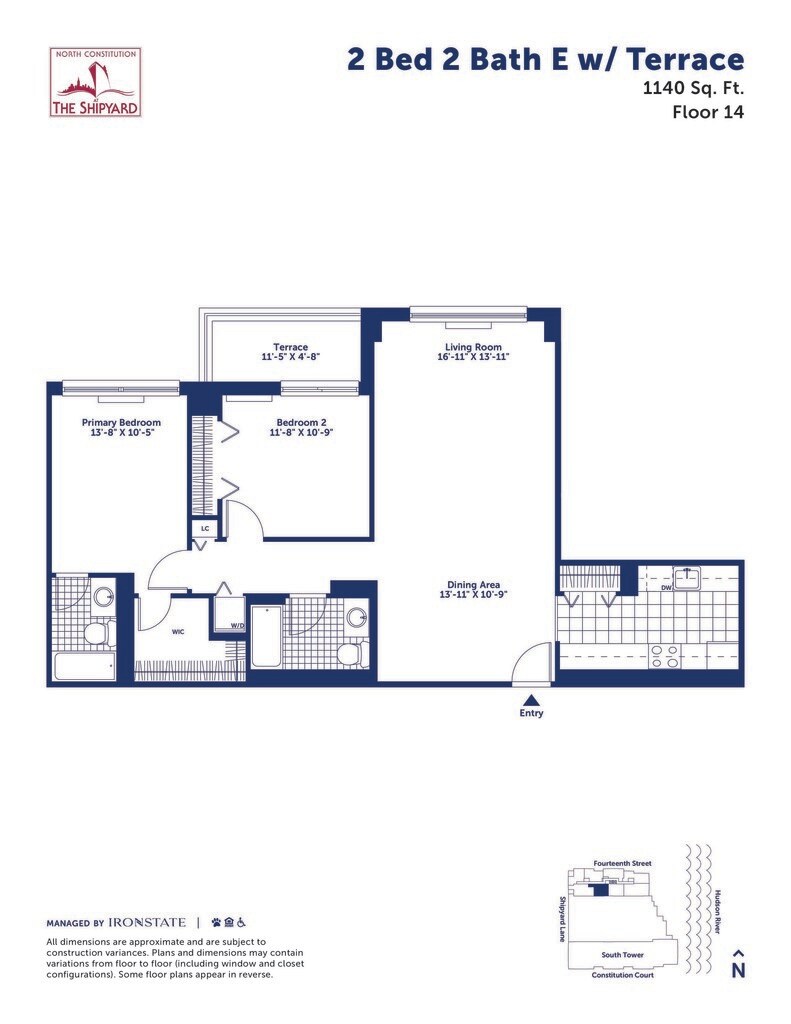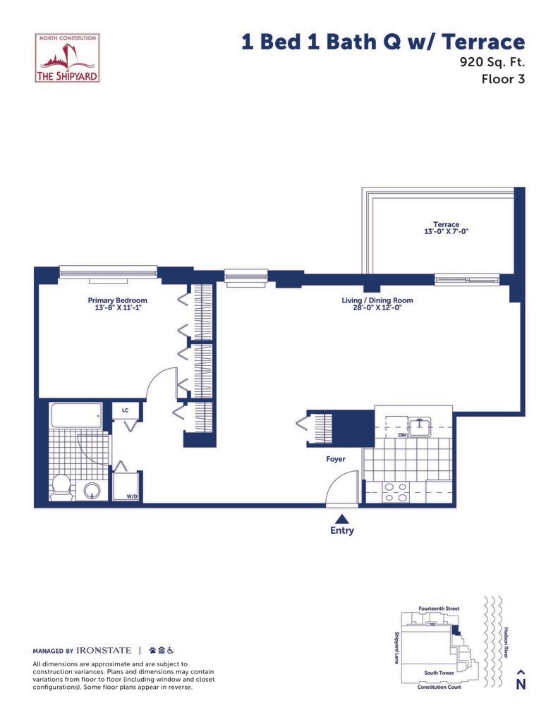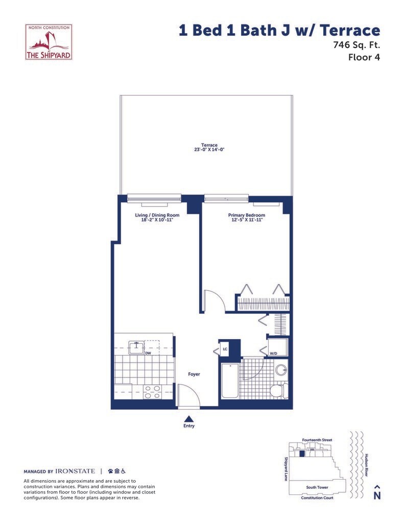 The North Constitution sits in the heart of The Shipyard, Hobokens most coveted neighborhood, with breathtaking views of the Hudson River, New York Harbor and the Manhattan skyline. Residents have access to an impressive array of amenities at The Shipyard, including a fabulous waterfront park, a state-of-the-art fitness center, two rooftop pools, sun decks, childrens play areas and much more.