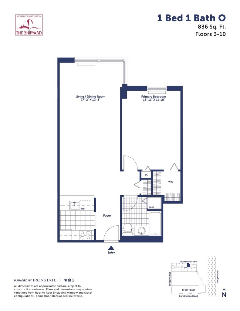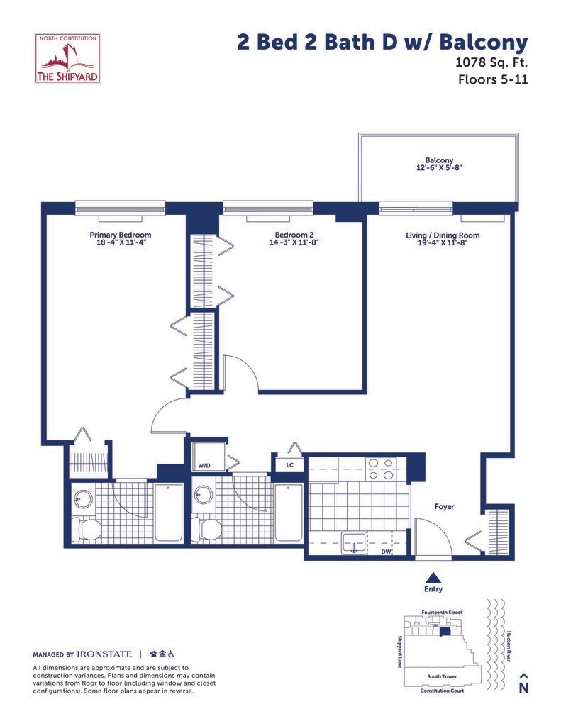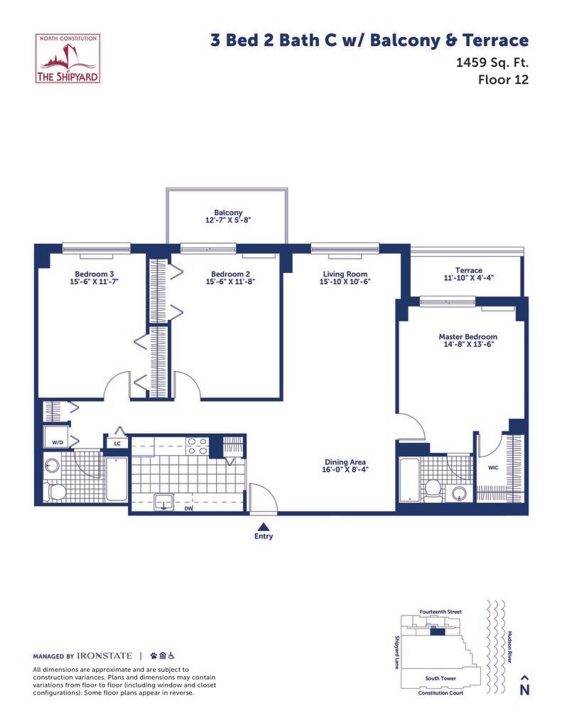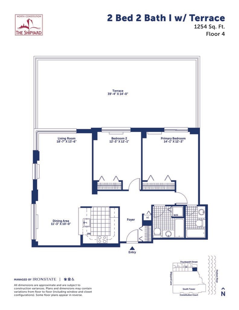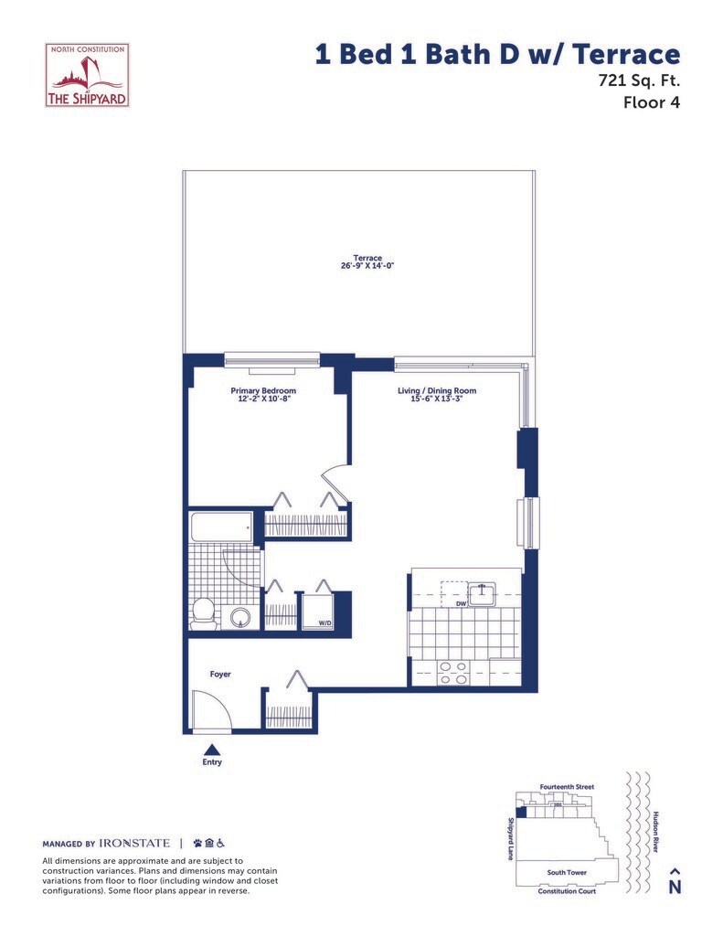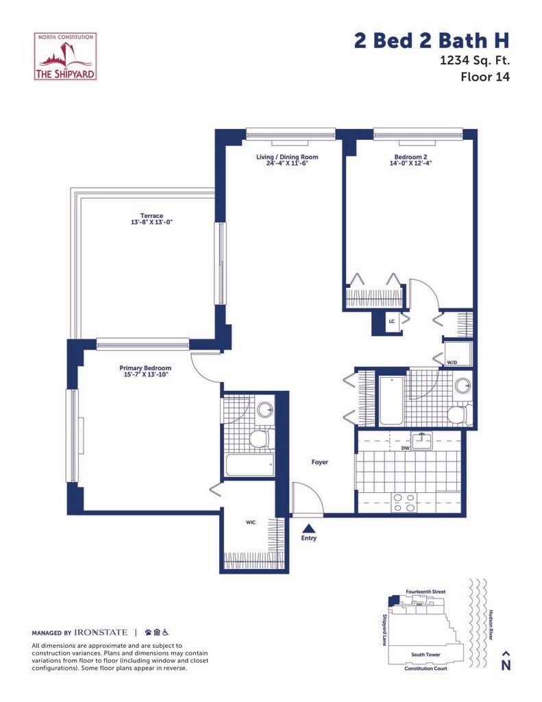 The North Constitution sits in the heart of The Shipyard, Hobokens most coveted neighborhood, with breathtaking views of the Hudson River, New York Harbor and the Manhattan skyline. Residents have access to an impressive array of amenities at The Shipyard, including a fabulous waterfront park, a state-of-the-art fitness center, two rooftop pools, sun decks, childrens play areas and much more.