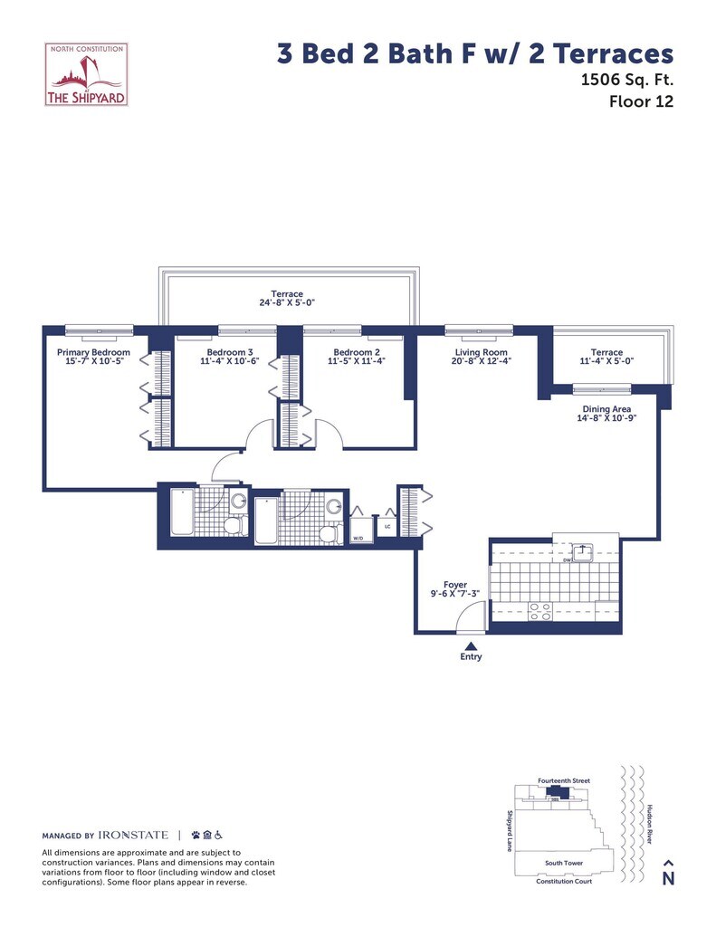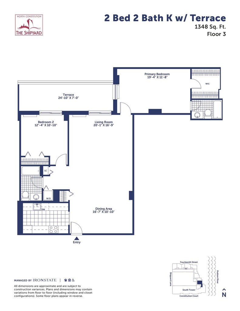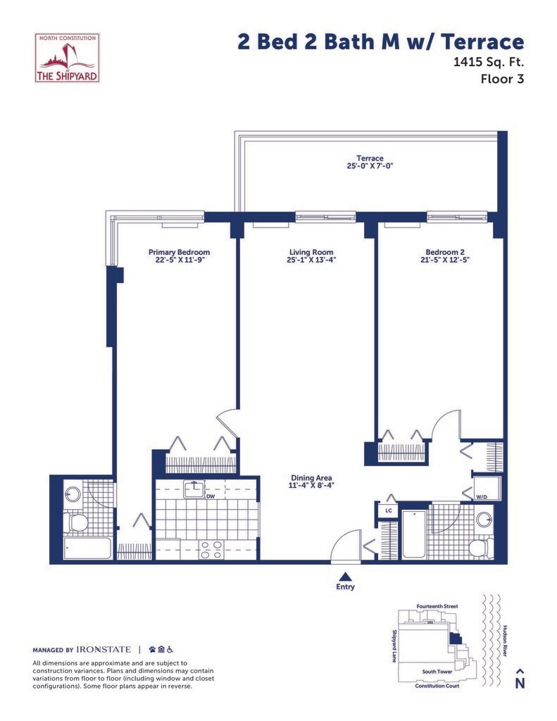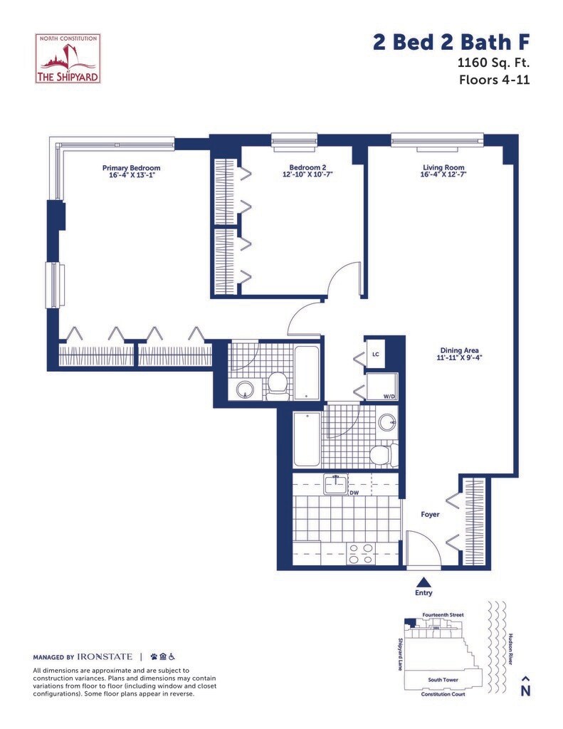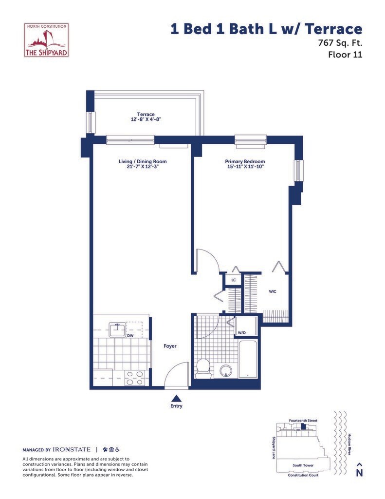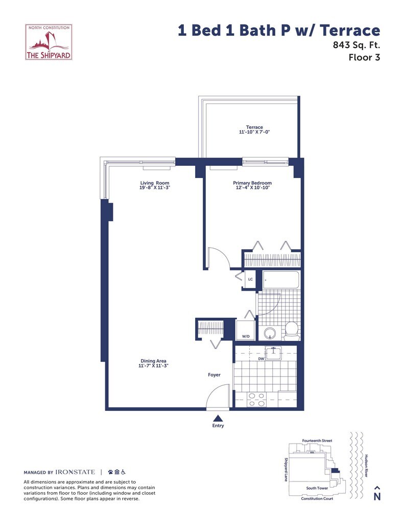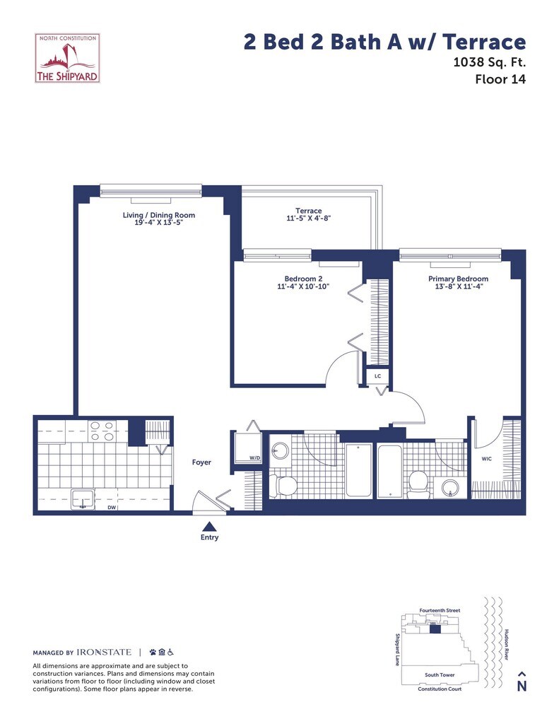 The North Constitution sits in the heart of The Shipyard, Hobokens most coveted neighborhood, with breathtaking views of the Hudson River, New York Harbor and the Manhattan skyline. Residents have access to an impressive array of amenities at The Shipyard, including a fabulous waterfront park, a state-of-the-art fitness center, two rooftop pools, sun decks, childrens play areas and much more.
