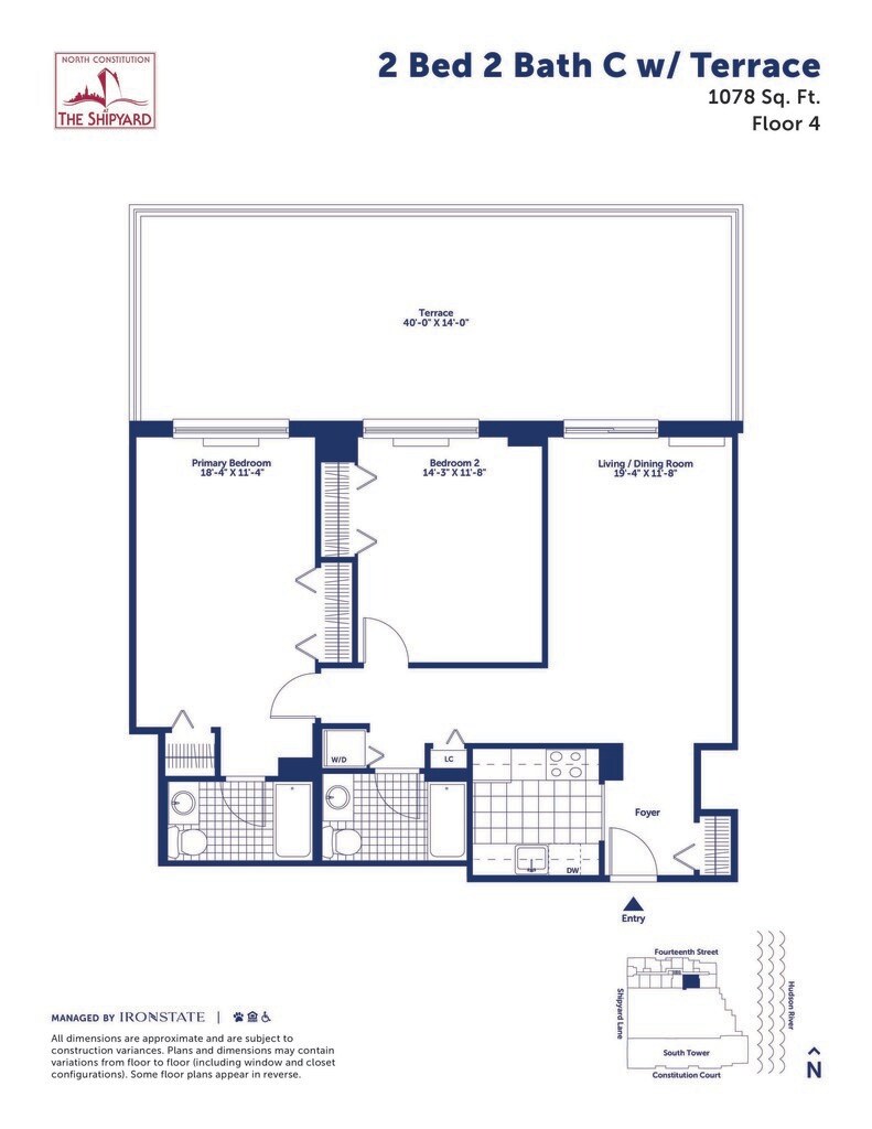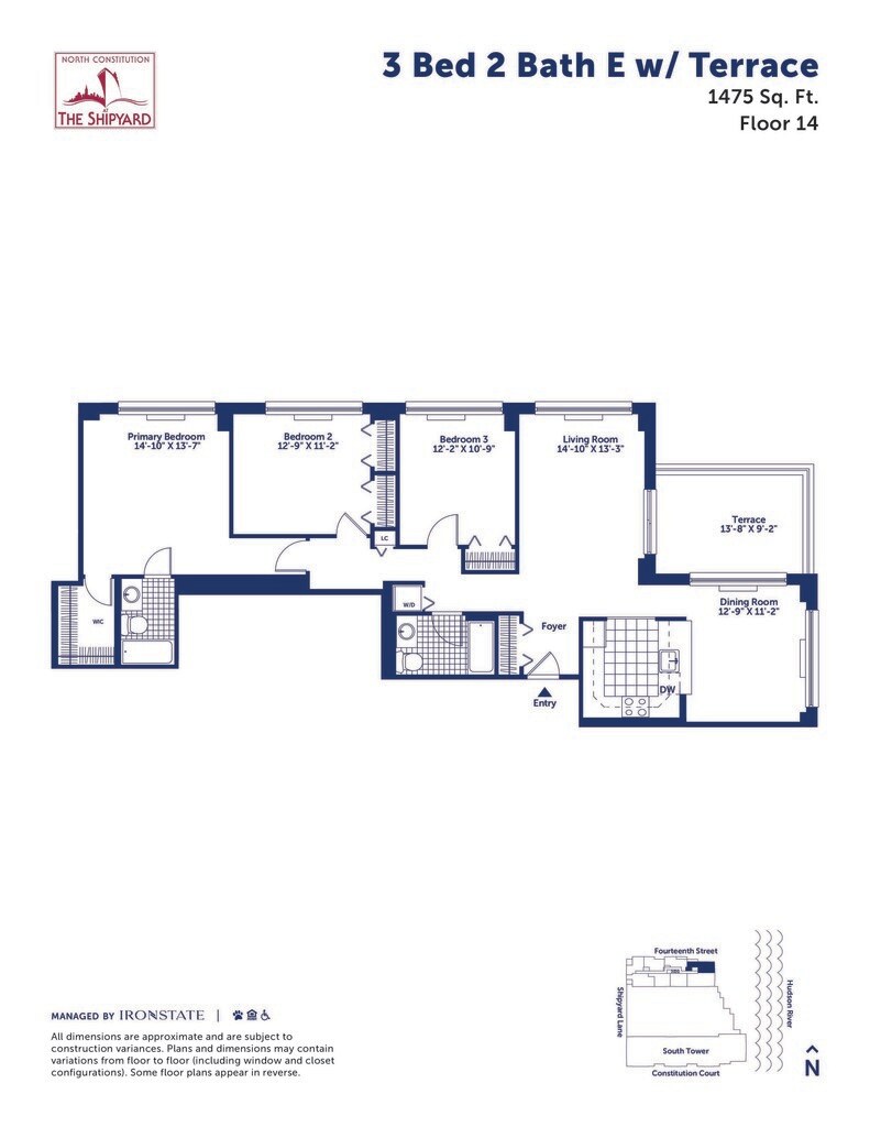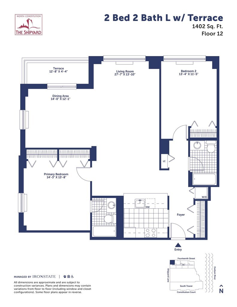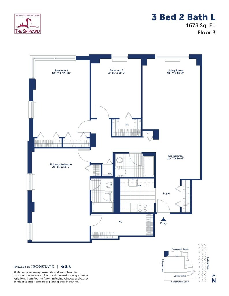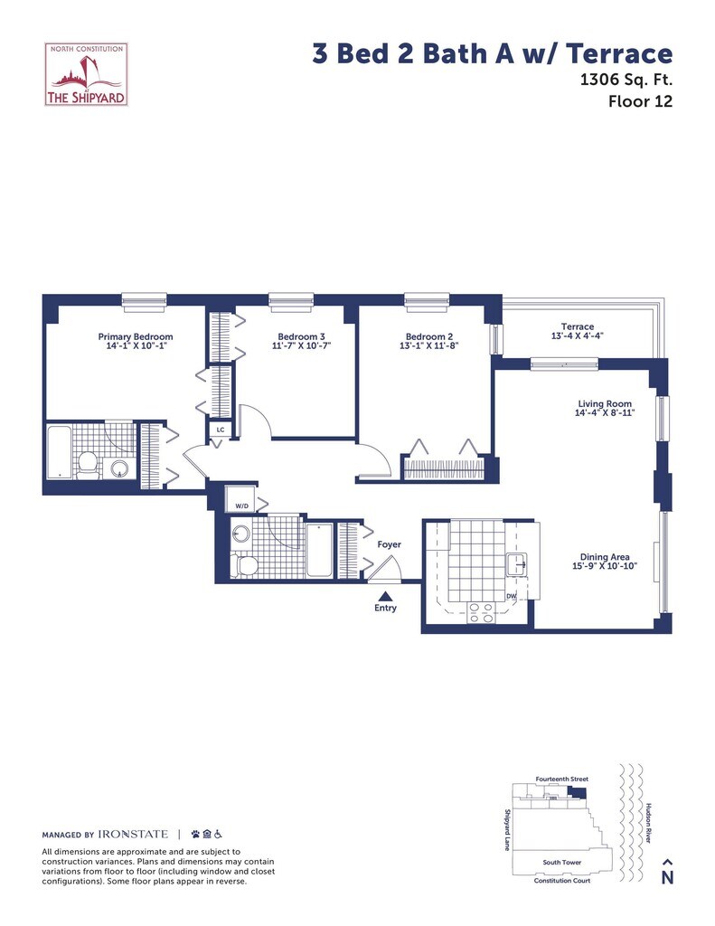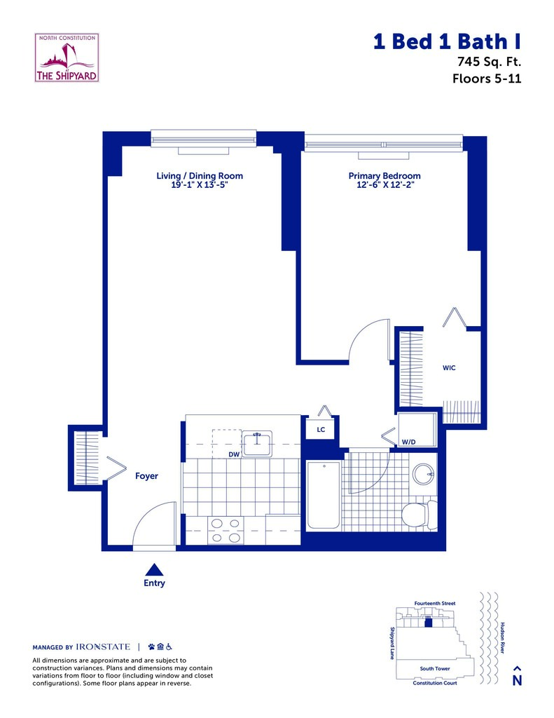 The North Constitution sits in the heart of The Shipyard, Hobokens most coveted neighborhood, with breathtaking views of the Hudson River, New York Harbor and the Manhattan skyline. Residents have access to an impressive array of amenities at The Shipyard, including a fabulous waterfront park, a state-of-the-art fitness center, two rooftop pools, sun decks, childrens play areas and much more.