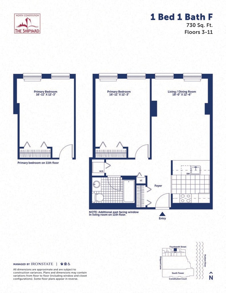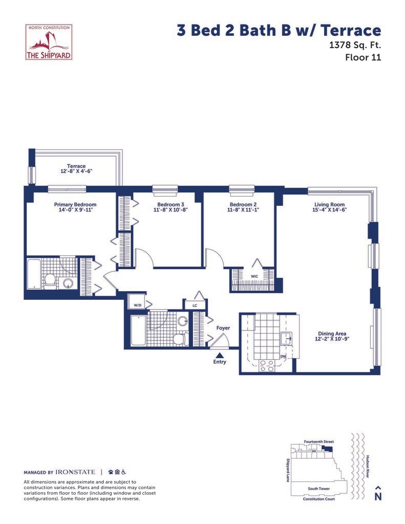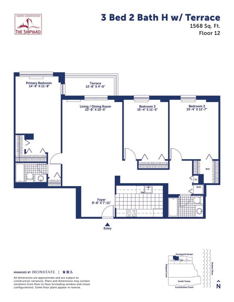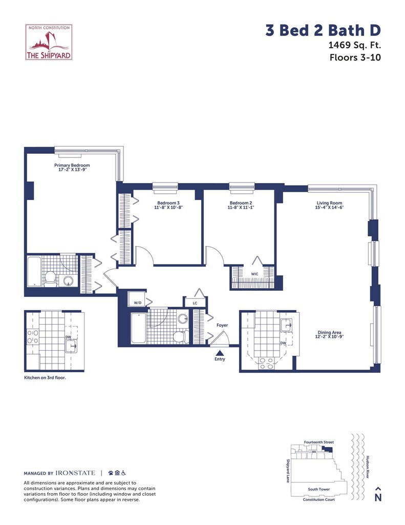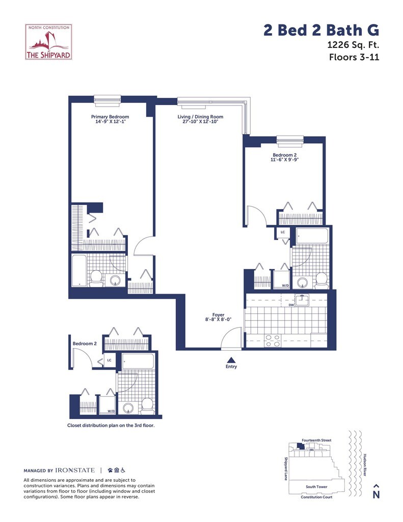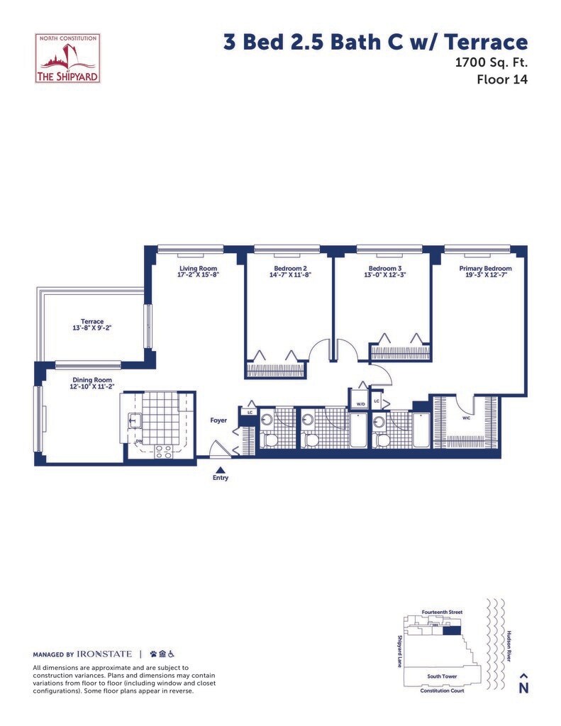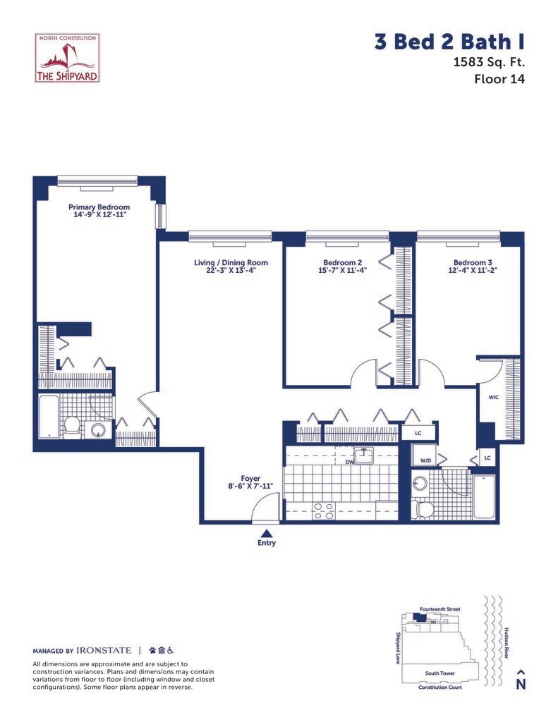 The North Constitution sits in the heart of The Shipyard, Hobokens most coveted neighborhood, with breathtaking views of the Hudson River, New York Harbor and the Manhattan skyline. Residents have access to an impressive array of amenities at The Shipyard, including a fabulous waterfront park, a state-of-the-art fitness center, two rooftop pools, sun decks, childrens play areas and much more.