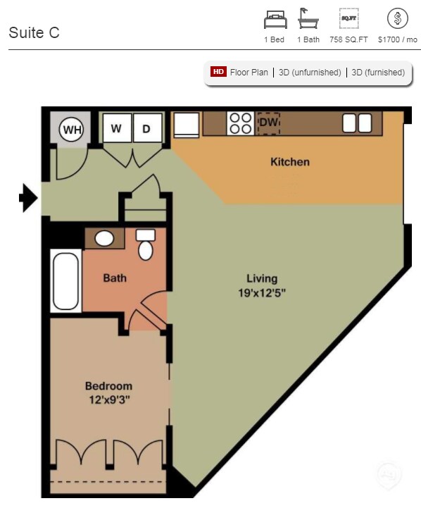 Studio - Floorplan 1 Suite B