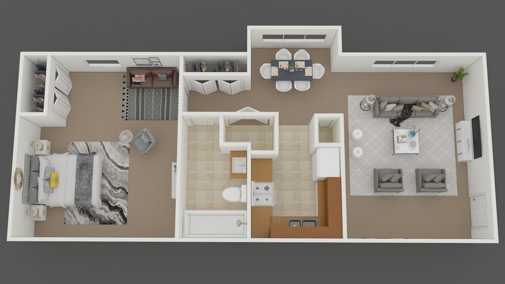- 1 Bedroom- Floorplan 1x1- From $7001 Bed, 1 Bath, 618 sq ftAvailable Now- Availability Details- Price - Availability Date - Unit - Sq Ft - From $700 - Available Now - 1x1 - 618 sq ft - Model Amenities and Features- Features- High Speed Internet Access