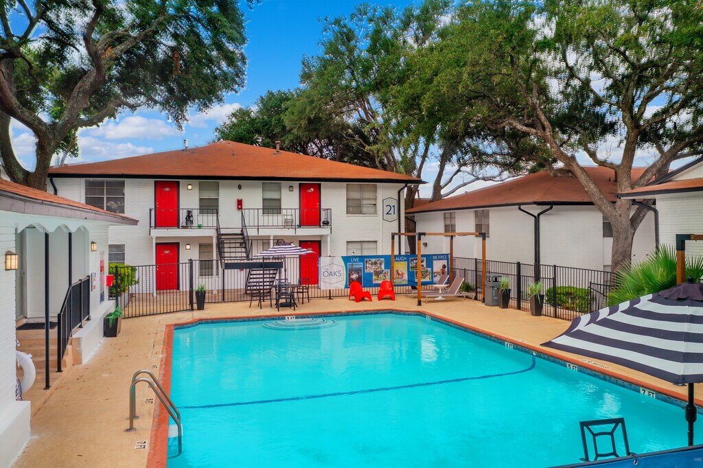 Welcome to The Oaks at Medical Apartments, a quiet retreat nestled among 100-year-old oak trees. If you crave convenience, comfort, and an unbeatable location, your search ends here! Situated at the southern perimeter of the Medical Center, we boast proximity to USAA and more than 45 hospitals and medical care facilities, positioning us as the top choice for numerous employees and medical students alike.