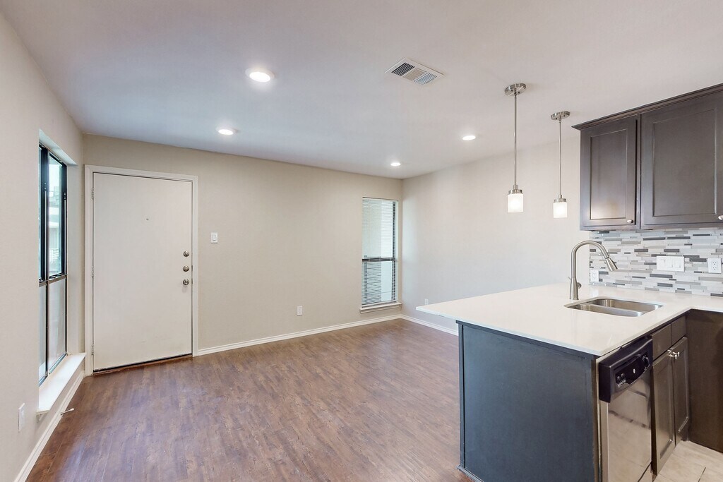 This beautiful [1 and 2-bedroom] apartment has been updated with new kitchen and bathroom cabinets, quartz countertops, laminate floors, new light and plumbing fixtures, and stainless-steel appliances. The kitchen is open to the living room, and there is recess lighting throughout. New amenities include a pool with a hot tub, an expanded pool deck with a modern pergola, a sitting area, BBQ grills, and much more—easy access to US-75, theaters, and shops.