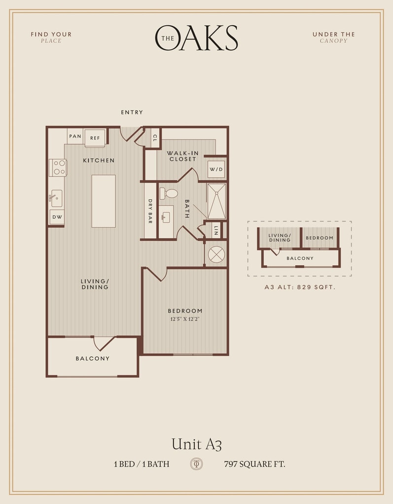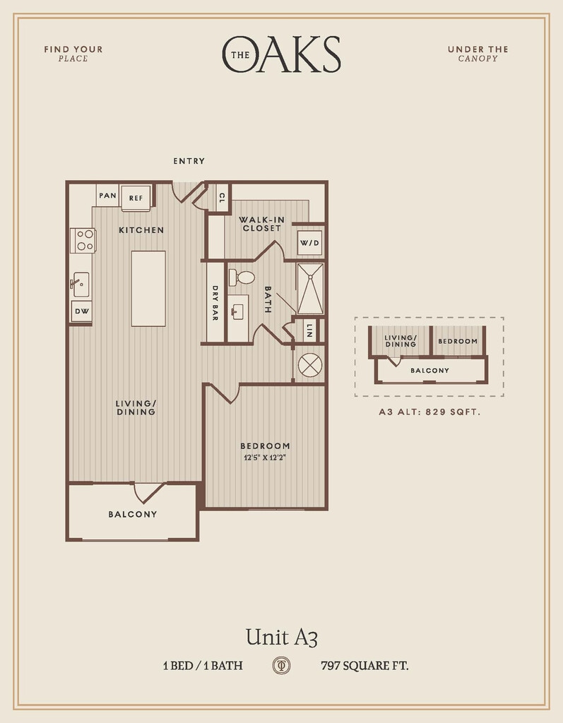 Apartment Model: A3-60From $1,2131 Bedroom, 1 Bath, 797 sq ftAvailable Now![]()