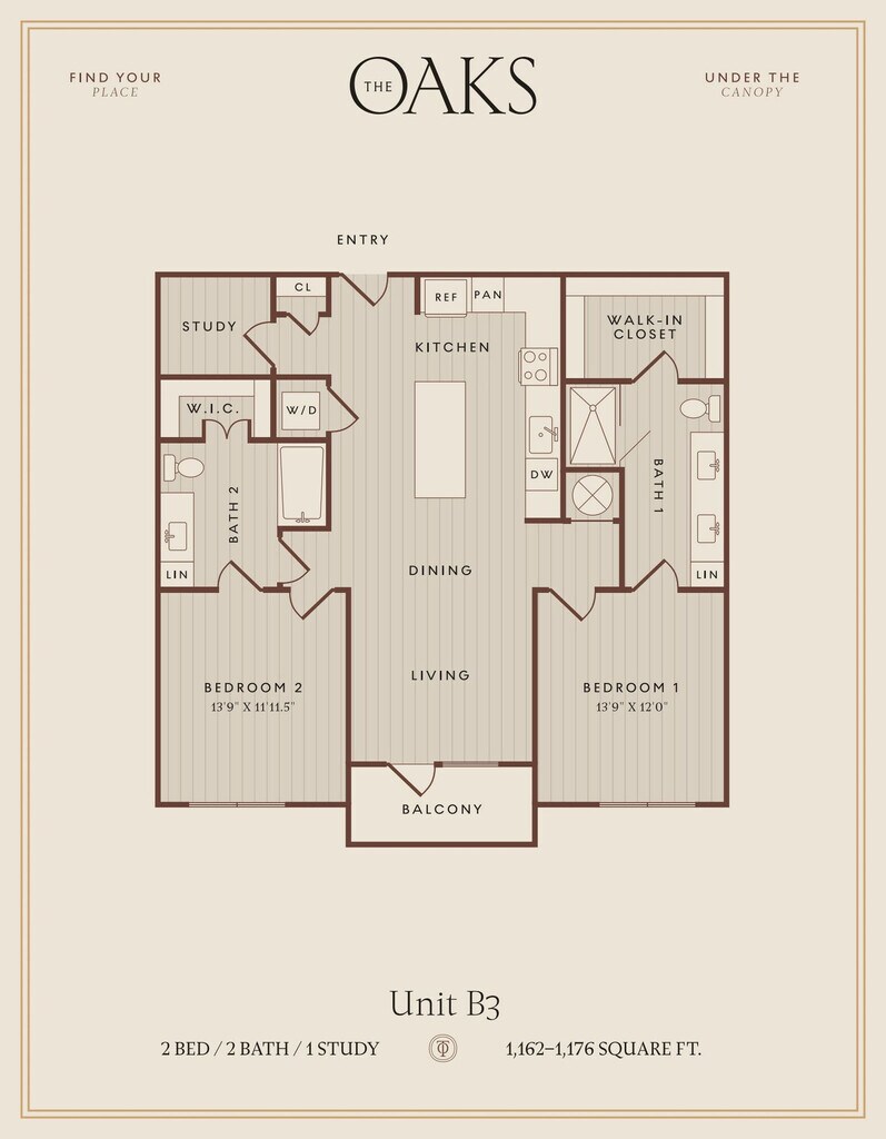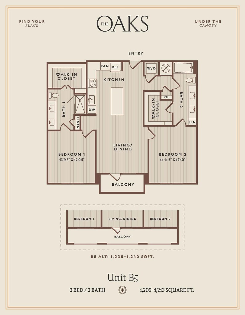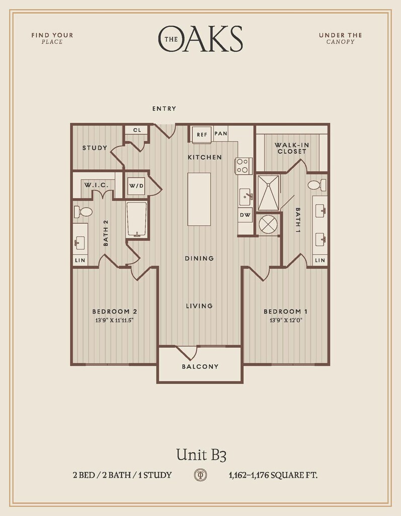 The Oaks offers 1 to 2 Bedroom apartments starting from $1,062 and having 586–1,363 sq ft. Here is the current pricing and availability: