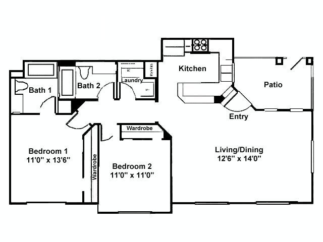 Apartment Model: EldanteCall For Rates2 Bedroom, 2 Bath, 1125 sq ftUnavailable![]() - Eldante - Floorplan 1