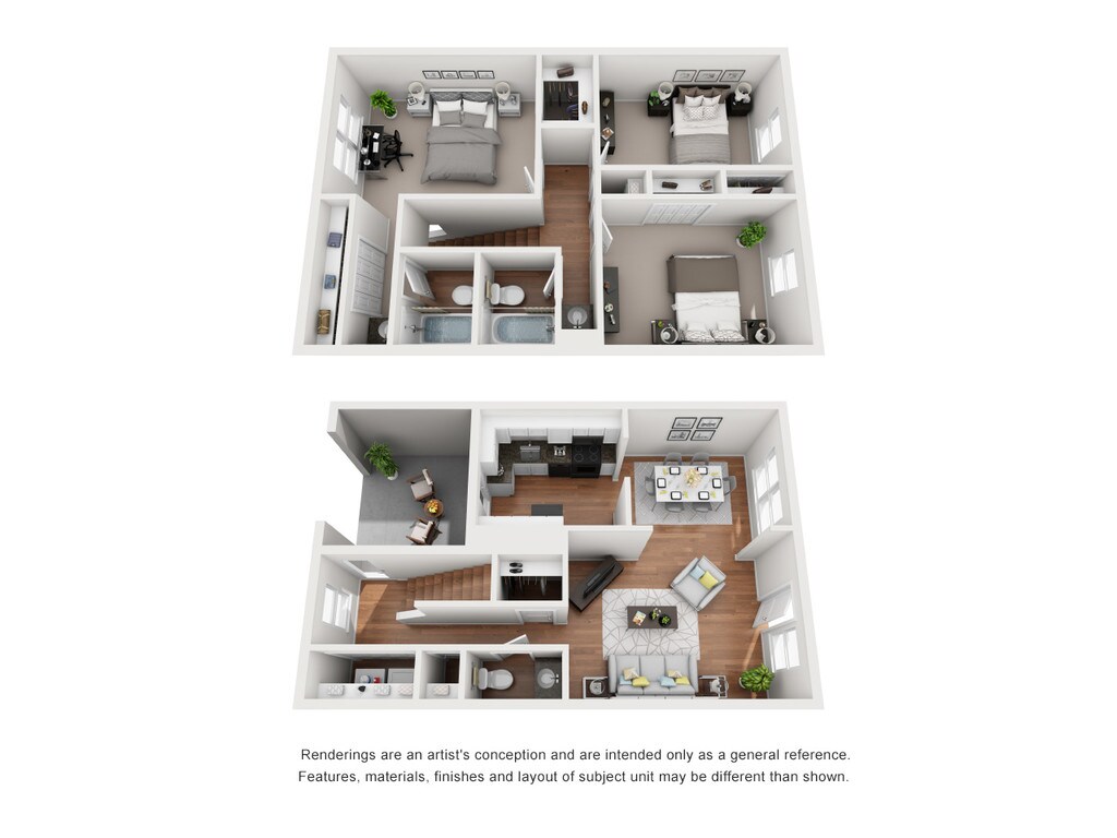 3 Beds, 2.5 Baths, 1330 sq ftLargest 3 BedroomThis is the largest 3 Bedroom at this PropertyModel Gallery