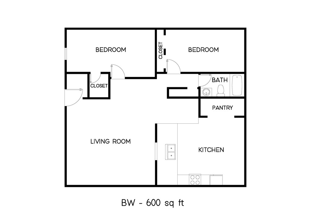 2 Beds, 1 Bath, 600 sq ftModel Gallery