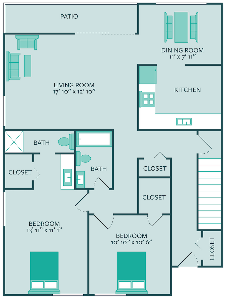 Emory 2 bedroom - Floorplan 1 Pyrenean 2 bedroom
