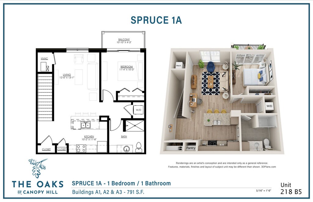 Spruce 1A - Floorplan 2 Apartment Unit: 1005-218Apartment Model: Spruce 1A$1,5301 Bedroom, 1 Bath, 791 sq ftAvailable NowAspen 1A